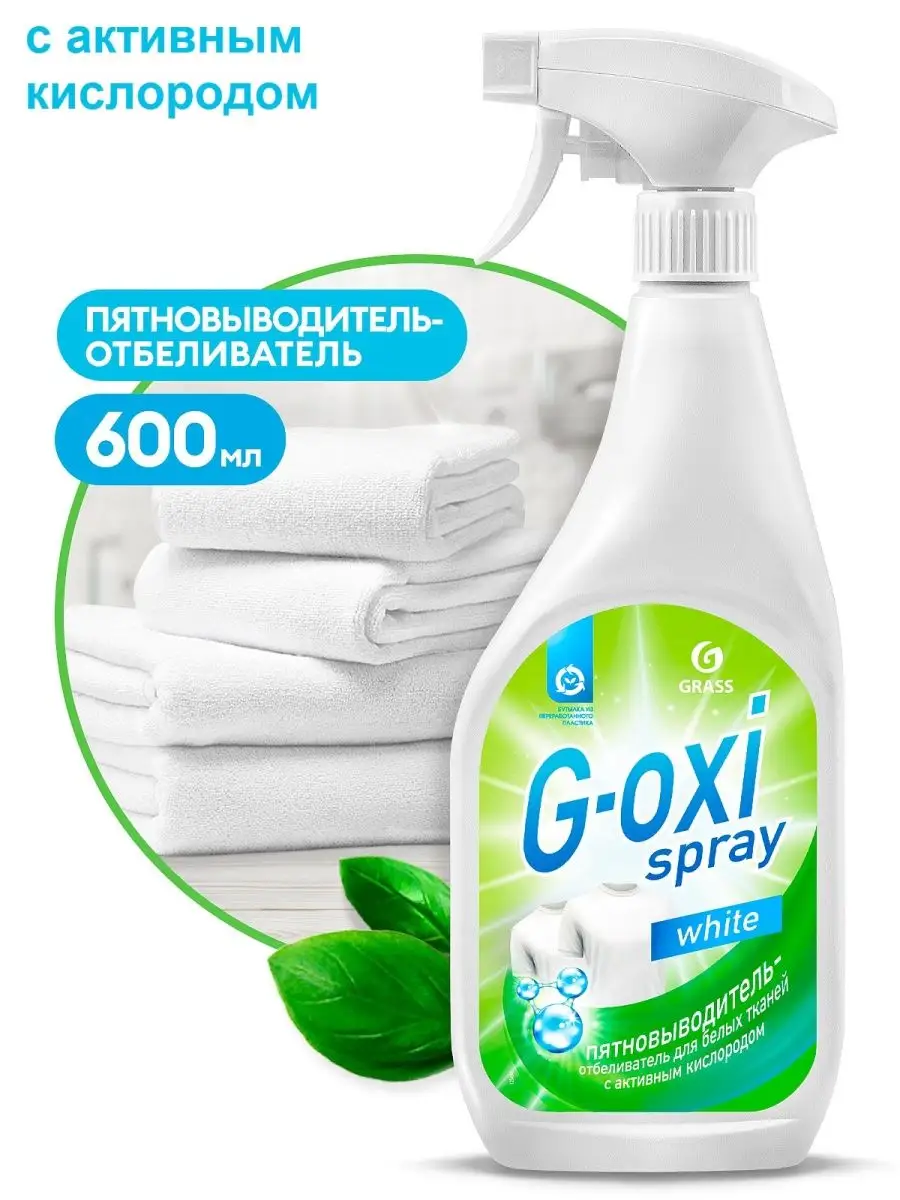 Описание: Пятновыводитель-отбеливатель "G-oxi spray". Благодаря активному кислороду, пятновыводитель-отбеливатель для белых и светлых тканей удаляет загрязнения различного происхождения и усиливает белизну. Легко справляется с пятнами от травы, ягод, красного вина, сока, шоколада и др. Эффективен в широком диапазоне температур: от +30 до +90˚C. Подходит для автоматической и ручной стирки. Способ применения: распылить на въевшиеся пятна, выдержать на ткани не более 10 минут, тщательно прополоскать или стирать как обычно. При необходимости повторить. (всегда следовать инструкции по стирке, указанной на ярлыках одежды! Не допускать высыхания G-oxi на ткани!)