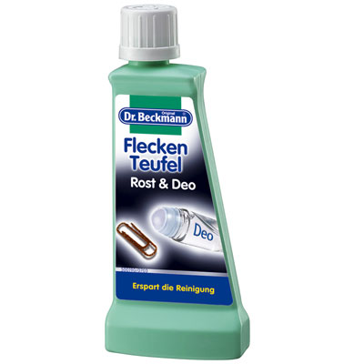 Описание: Пятновыводитель "Dr. Beckmann" обладает специальной формулой, которая удаляет пятна от ржавчины и дезодоранта.