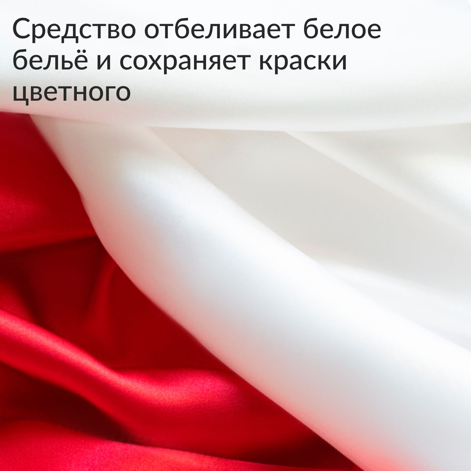 Отбеливает белое бельё, сохраняет и освежает краски цветного, нейтрализует запахи и придаёт свежесть, экологичный состав бережно сохраняет структуру ткани.