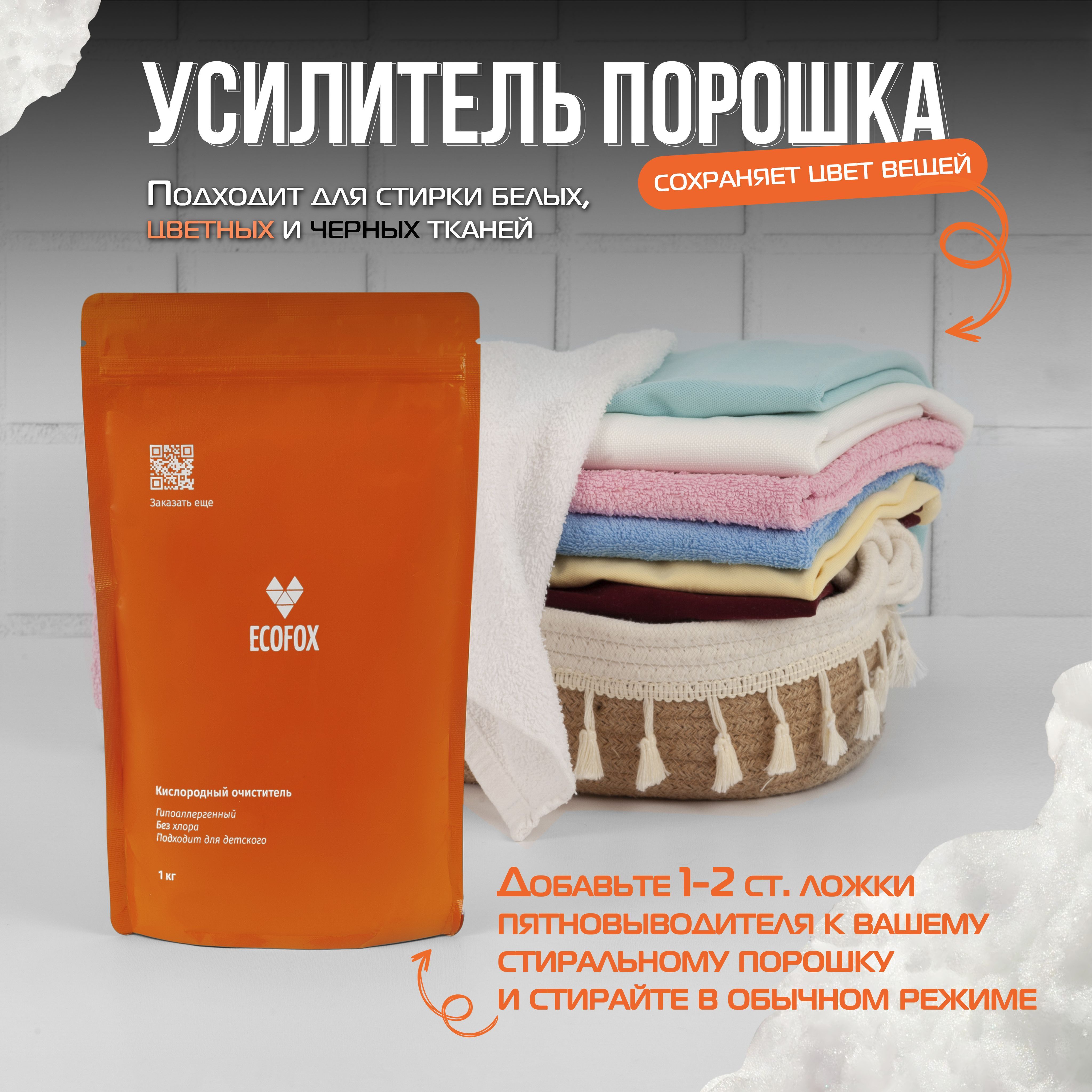 Пятновыводитель кислородный отбеливатель ECOFOX 2 кг, очиститель для одежды, обуви, мебели, для белья, посуды, для стирки, перкарбонат натрия 100%
