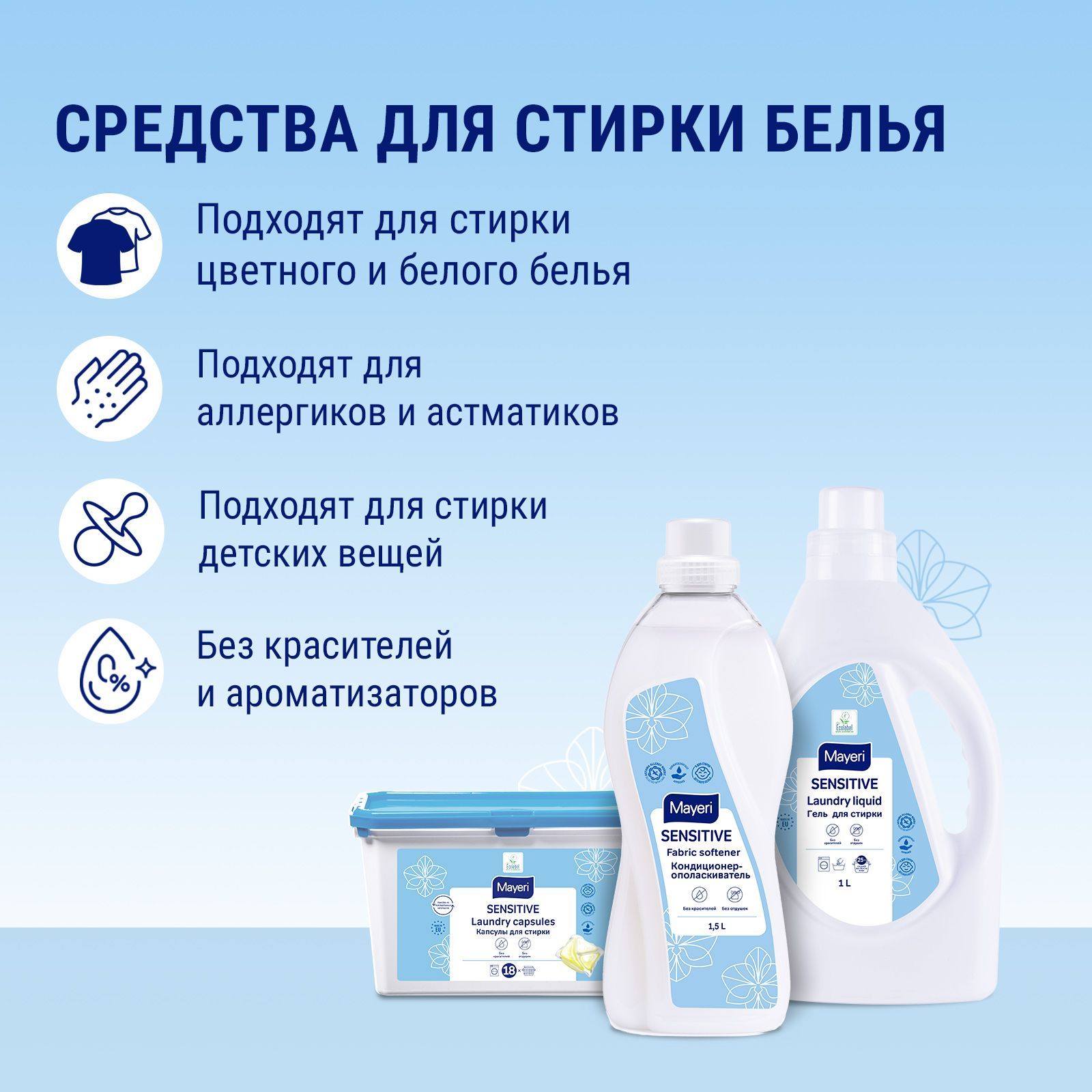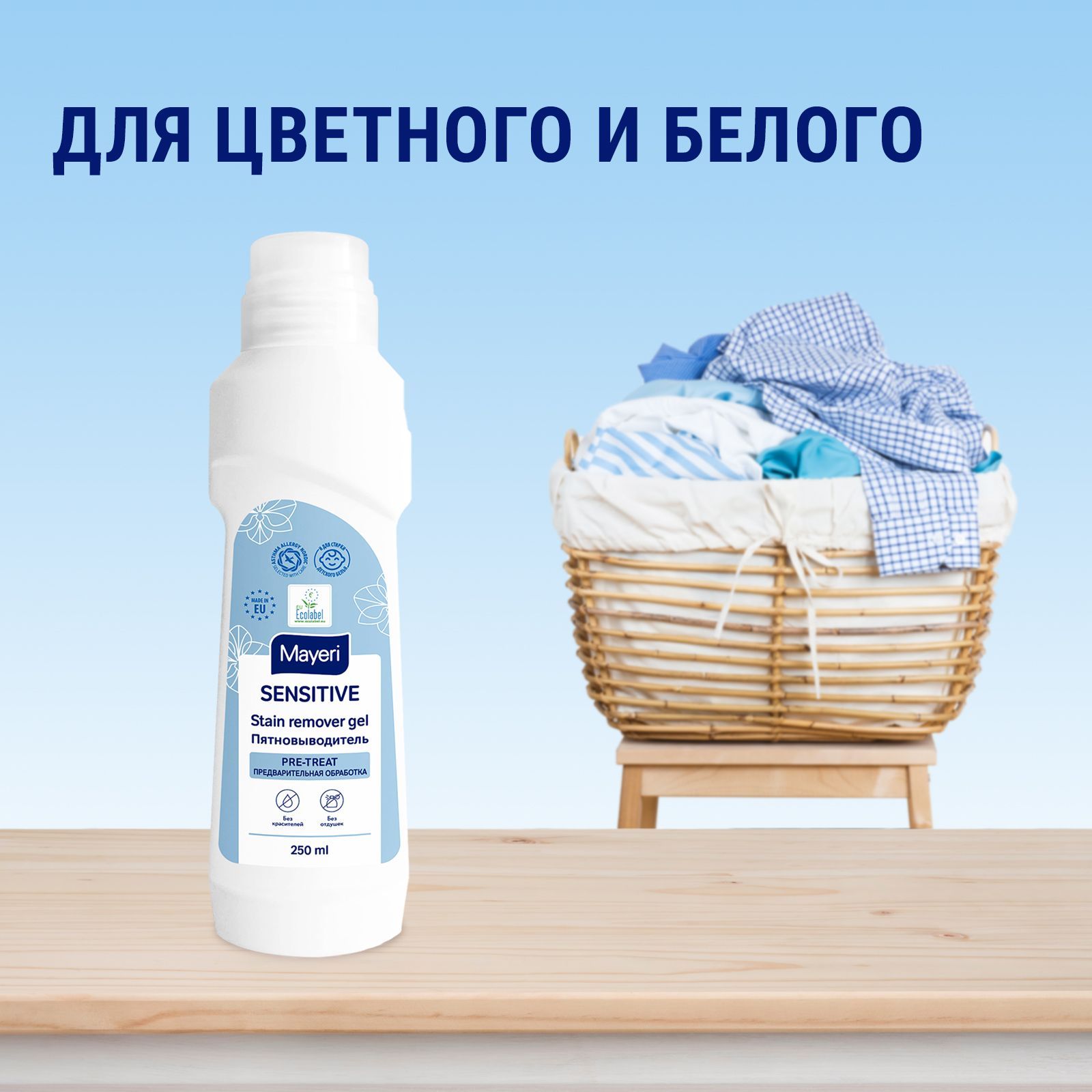 Пятновыводитель Mayeri Sensitive, для цветного, белого и детского белья, эко средство, 250 мл