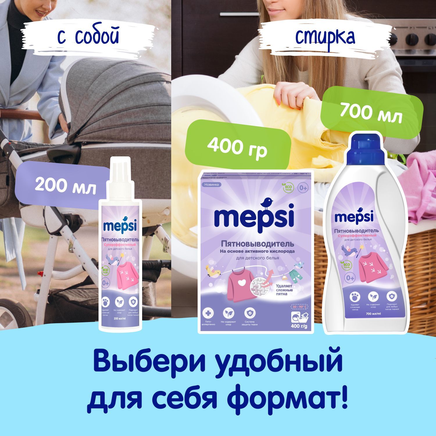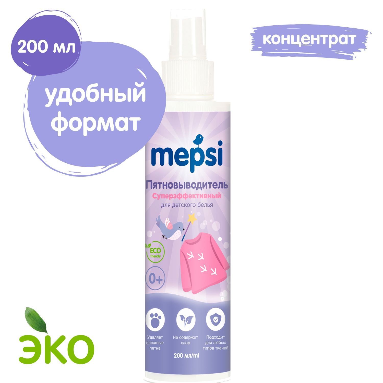 Пятновыводитель MEPSI для стирки белья детский, 200 мл, спрей. Средство от пятен для цветного, черного, белого белья. Хозяйственные товары, бытовая химия детская