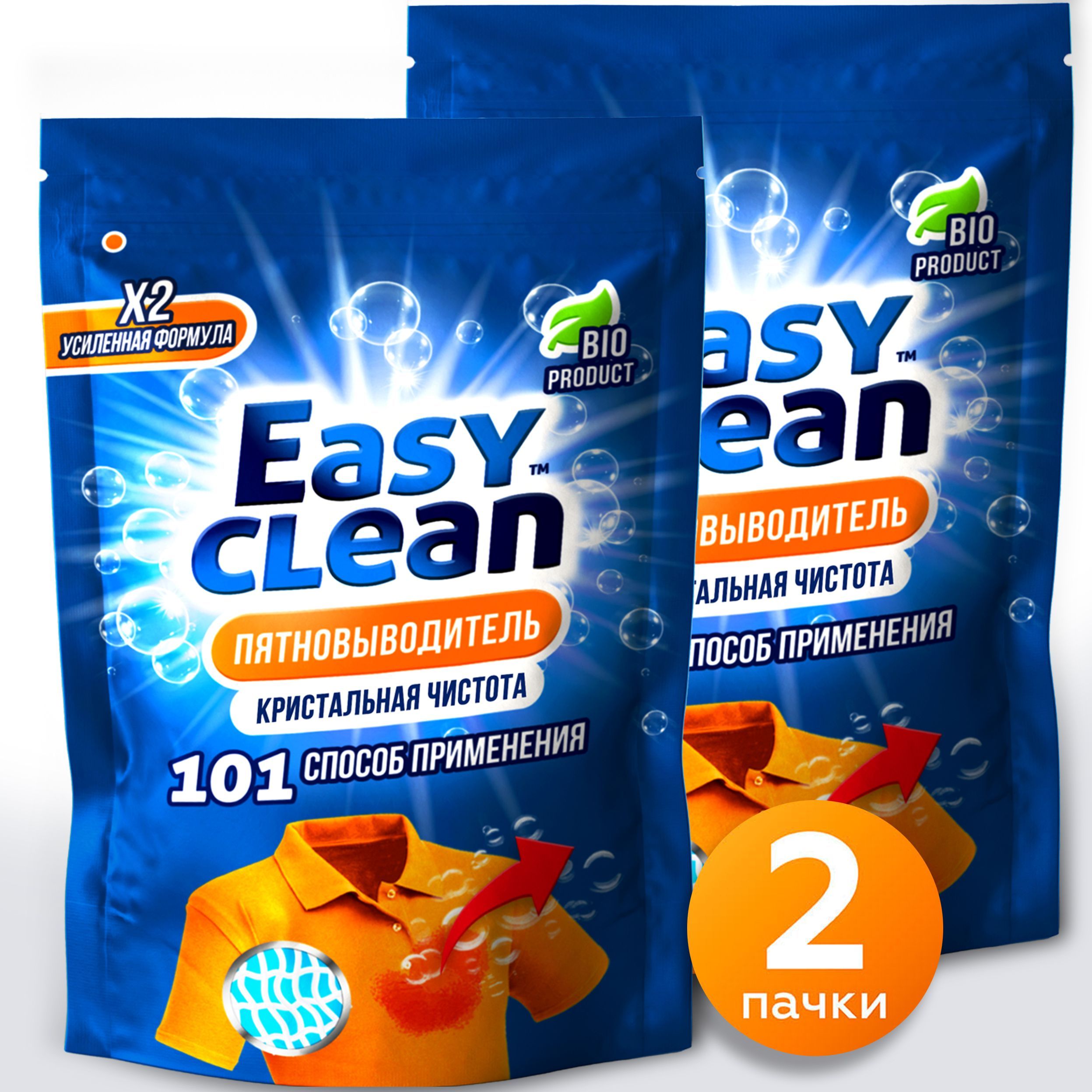 Пятновыводитель - отбеливатель "Easy Clean" 2 шт., кислородный очиститель для одежды, обуви, мебели, цветного и белого белья, ковров и посуды перкарбонат натрия 100%, экологичный универсальный