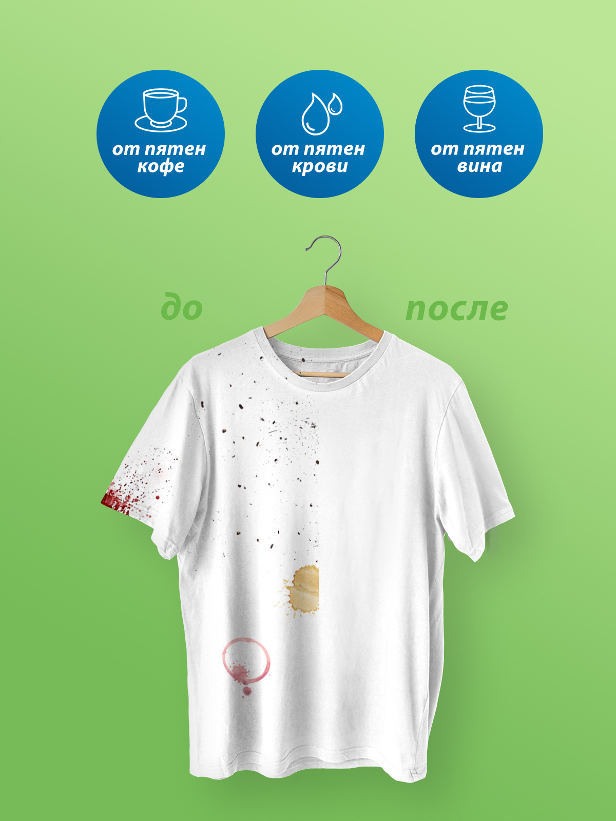 Стирка: добавьте к вашему стиральному порошку 1/2 ложку пятновыводителя, при необходимости повторите стирку.