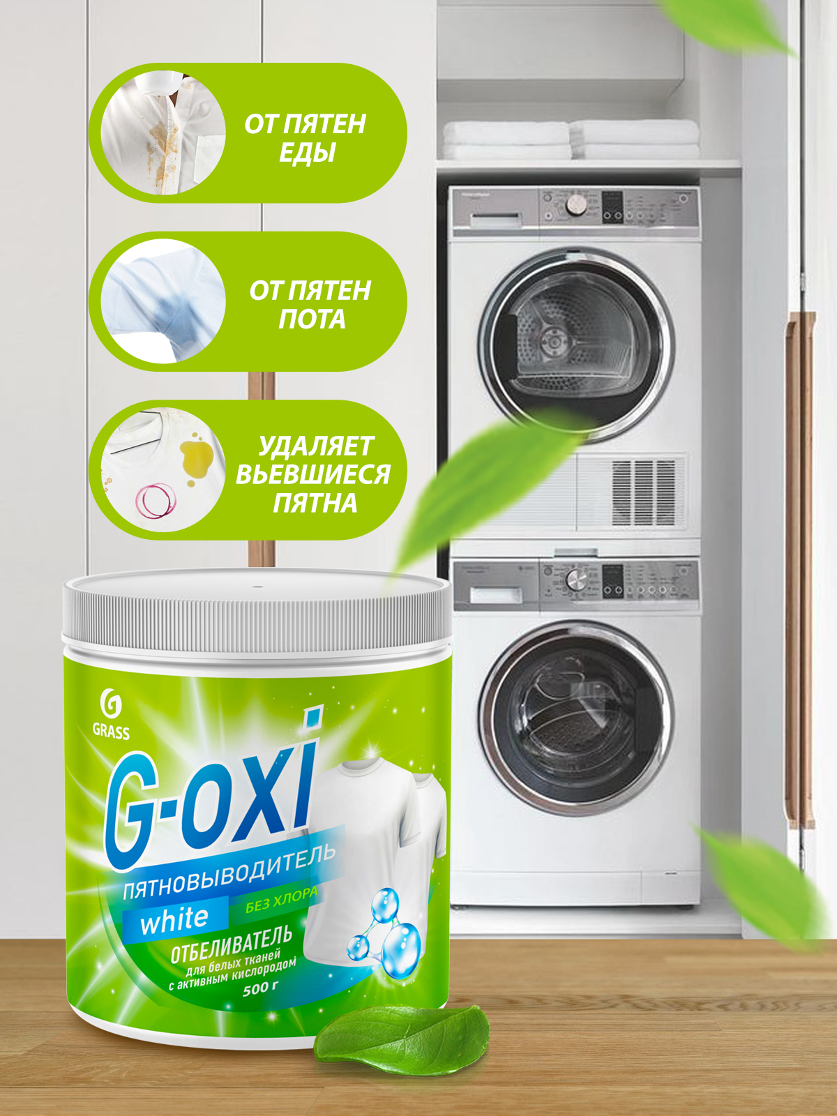 Пятновыводитель / отбеливатель GRASS G-OXI 500гр для белого белья, гипоаллергенный, универсальный, перкарбонат натрия