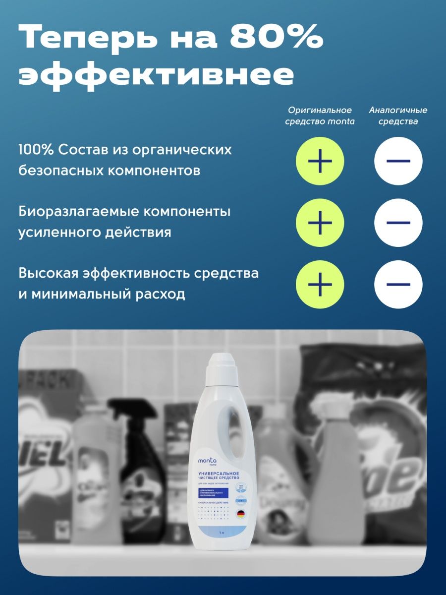 Описание: Универсальный пятновыводитель от бренда Monta Home. Он настолько хорош, что удалит любое пятно, независимо от степени его сложности! Если вы имеете дело с пятнами на постельном белье, после долгого дня игр на улице с детьми или с жиром от жарки вкусного блюда, то наш пятновыводитель справится с этой задачей. Он удаляет пятна и запах с одежды, подошвы обуви, ковров, стен и т.д. Это единственный жидкий очиститель, который можно использовать для уборки и устранения загрязнений на всех бытовых поверхностях, и он оказывает мощное воздействие на все виды пятен, от пищевых до масляных. Он подходит даже для профессиональной чистки, например, для удаления желтизны с пластика и ржавчины с металла. А когда нужно избавиться от трудновыводимых пятен на таких местах, как кухонная раковина или сиденья автомобиля? О них вам тоже не придется беспокоиться! Это удивительное средство может справиться со всеми пятнами - и что самое лучшее? Оно не содержит вредных химических веществ, которые могут навредить членам вашей семьи или домашним животным. Универсальный пятновыводитель также является экологически чистым, это означает, что он не наносит вреда окружающей среде. Он безопасен для постельных принадлежностей, детской одежды, спортивных изделий, мужских и женских носков и нижнего белья взрослых мужчин и женщин, подростков - парней и девушек и детей - мальчиков и девочек. С помощью универсального отбеливателя вы можете очистить практически все в вашем доме - от ковров до диванов, от кухонных приборов до детских игрушек. Вы даже можете использовать его для ухода и борьбы с грязью на автомобильных сиденьях или обуви! Этот хозяйственный очищающий гель прекрасно подойдет для очистки мебельного покрытия, паласов, ковролина, ковриков и обивки в автомобиле. Добавьте многофункциональный пятновыводитель во время стирки одежды или домашнего текстиля в машине, и он поможет вам избавиться даже от застаревших пятен пота на одежде в области подмышек, жирного блеска на воротниках пуховиков и других трудных пятен на полотенцах, покрывалах, шторах и занавесках без предварительного замачивания. Он таже поможет убрать пятна от жира, соуса, кофе, вина или травы с любой ткани. Эффективное моющее средство - антижир можно использовать на кухне для удаления налета с керамической и пластиковой посуды, а также для мытья сковороды, кастрюль и чайника. Сильное и эффективное чистящее средство прекрасно подойдет для быстрой и профессиональной уборки в службах клининга. У нас есть акции и распродажи, вы можете купить наши товары в подарок со скидки!