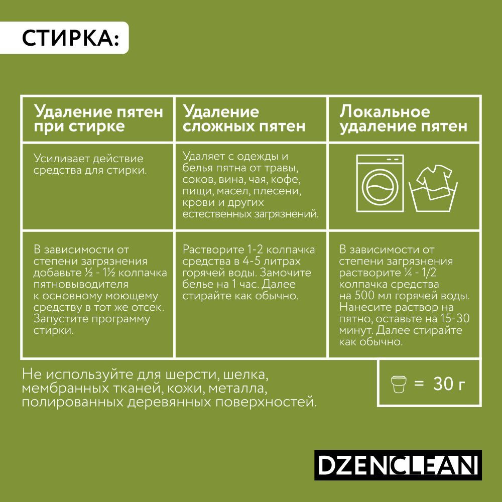 Пятновыводитель универсальный для тканей и поверхностей DzenClean, 500 г