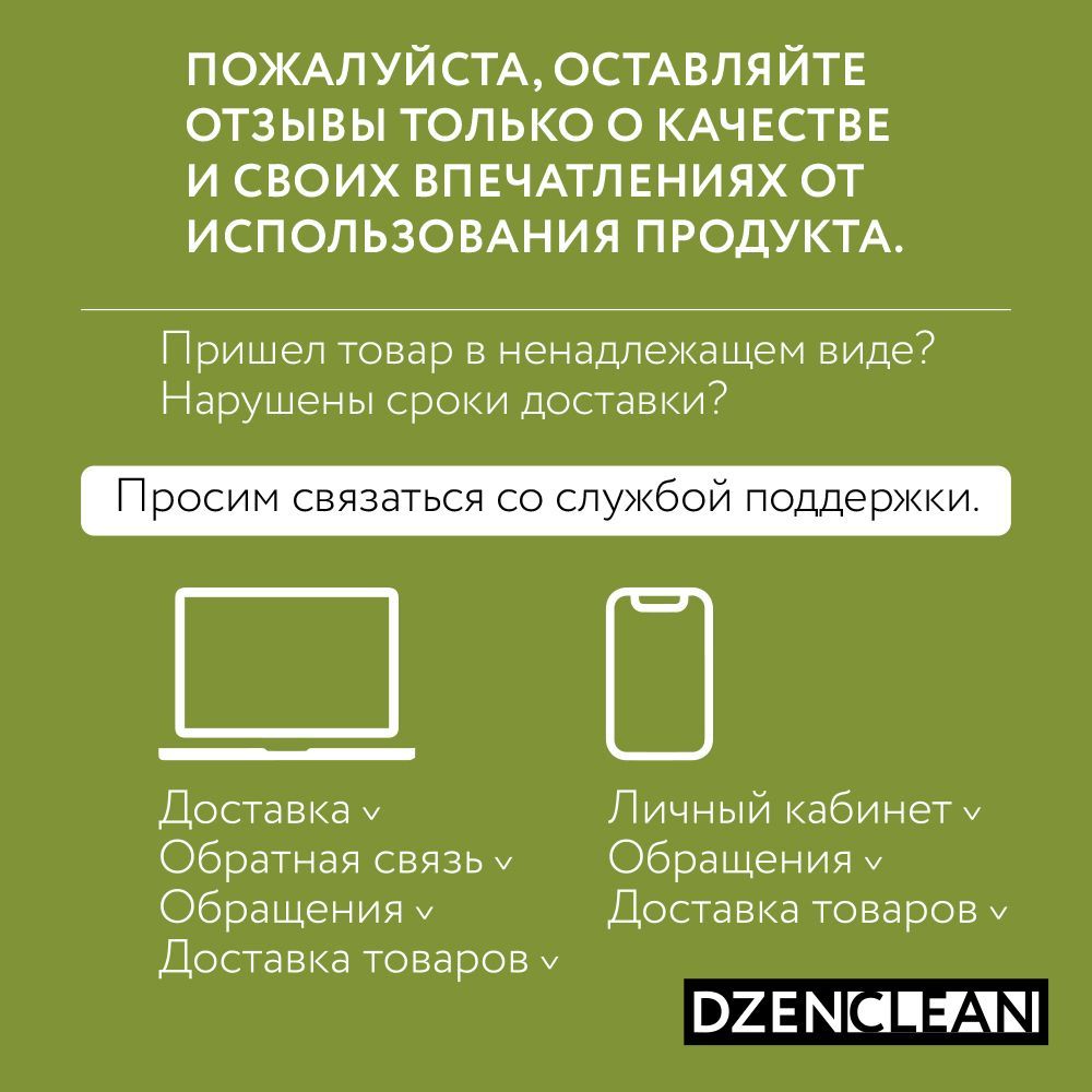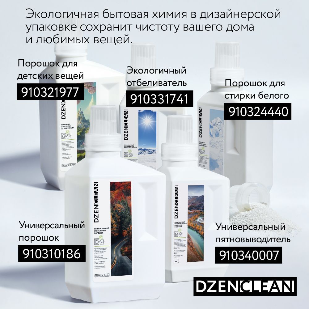 DzenClean ( Дзенклин ) –  российский бренд средств для стирки и уборки от компании P&B Group. Экологичная бытовая химия в необычной дизайнерской упаковке сохранит чистоту и красоту вашего дома и любимых вещей. Узнайте больше о нашем ассортименте, кликнув на логотип бренда в карточке товара.