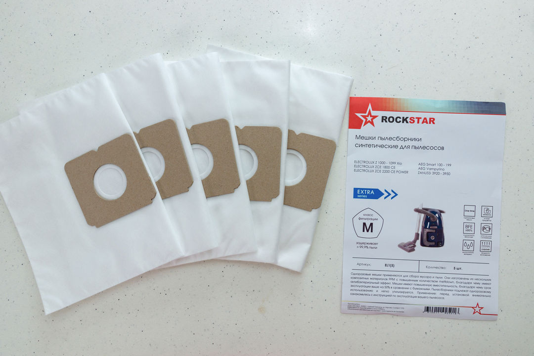 Пылесборники для пылесоса ELECROLUX XIO, одноразовые синтетические мешки ROCKSTAR EL1(5), комплект 5 шт.
