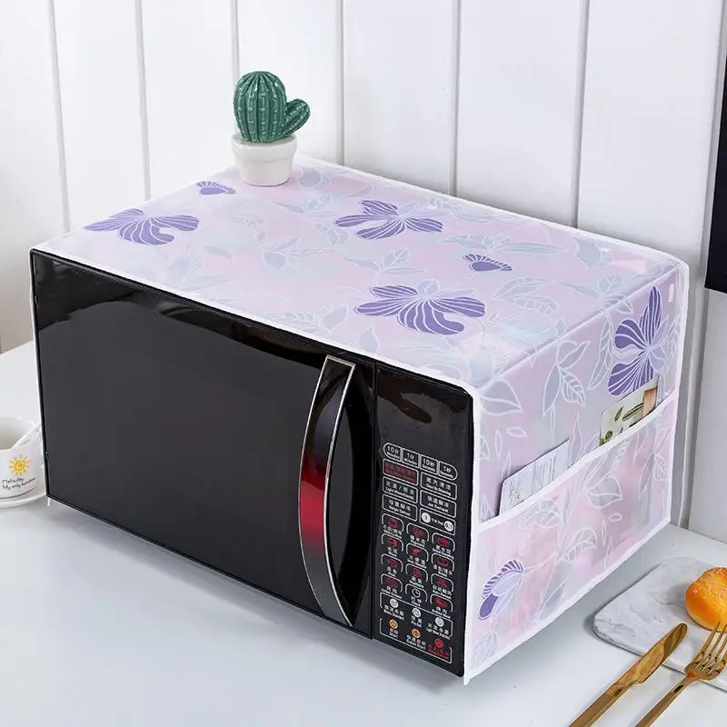Пылезащитный чехол для микроволновой печи, тонкое мастерство, равномерно плотные автомобильные линии, плоский, прочный и долговечный. Изысканные печатные узоры, простые и стильные, не выцветают. Экологически чистый материал PEVA, водонепроницаемый и незарастающий, моющийся и легко протираемый. Поставляется с карманом для хранения для удобного использования.