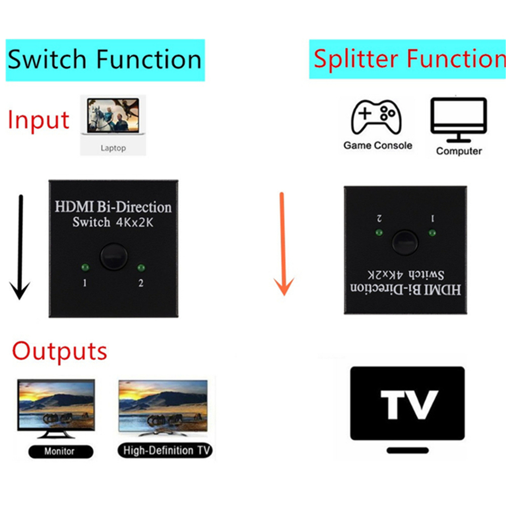 PzzPss 4K x 2K Switcher UHD 2 порта двунаправленное руководство 2x1 1x2 HDMI-совместимый переключатель HDCP поддерживает 4K FHD Ultra 1080P для ПК Особенности: