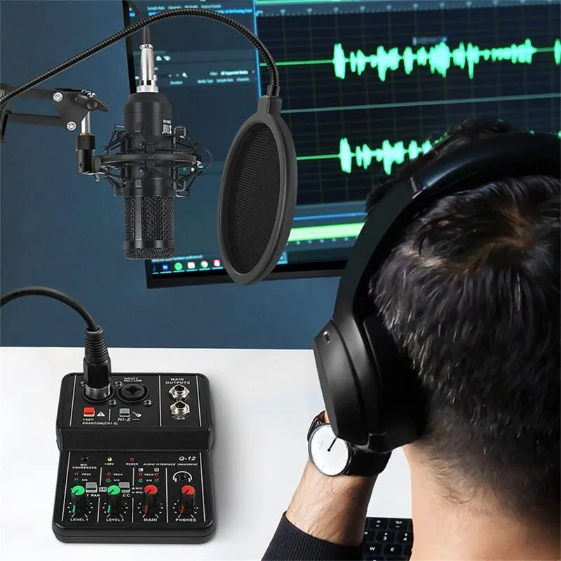 Q-12 Профессиональная Портативная звуковая карта микшера с монитором Электрогитара Запись прямой трансляции для студийного пения Компьютерный ПК