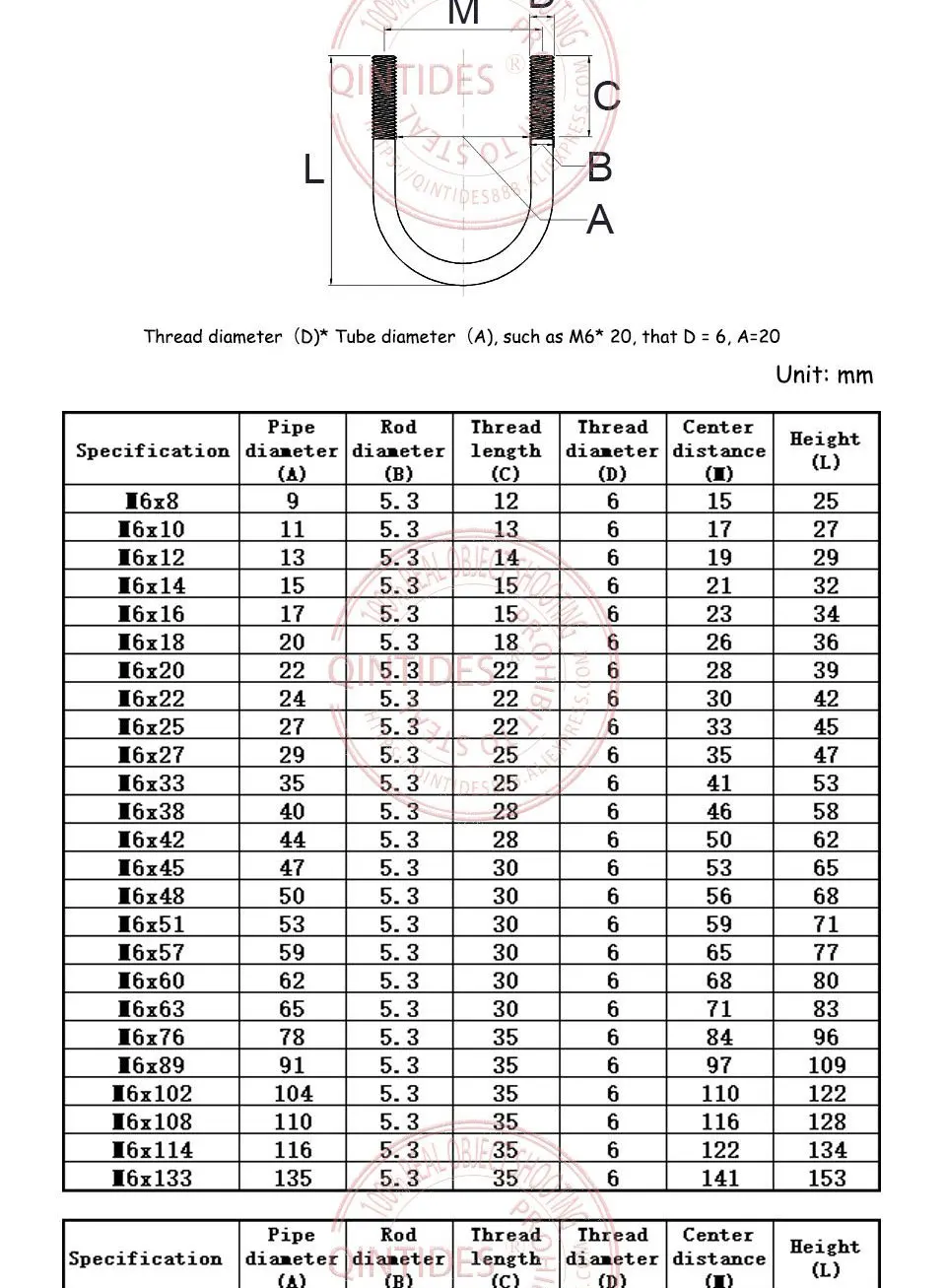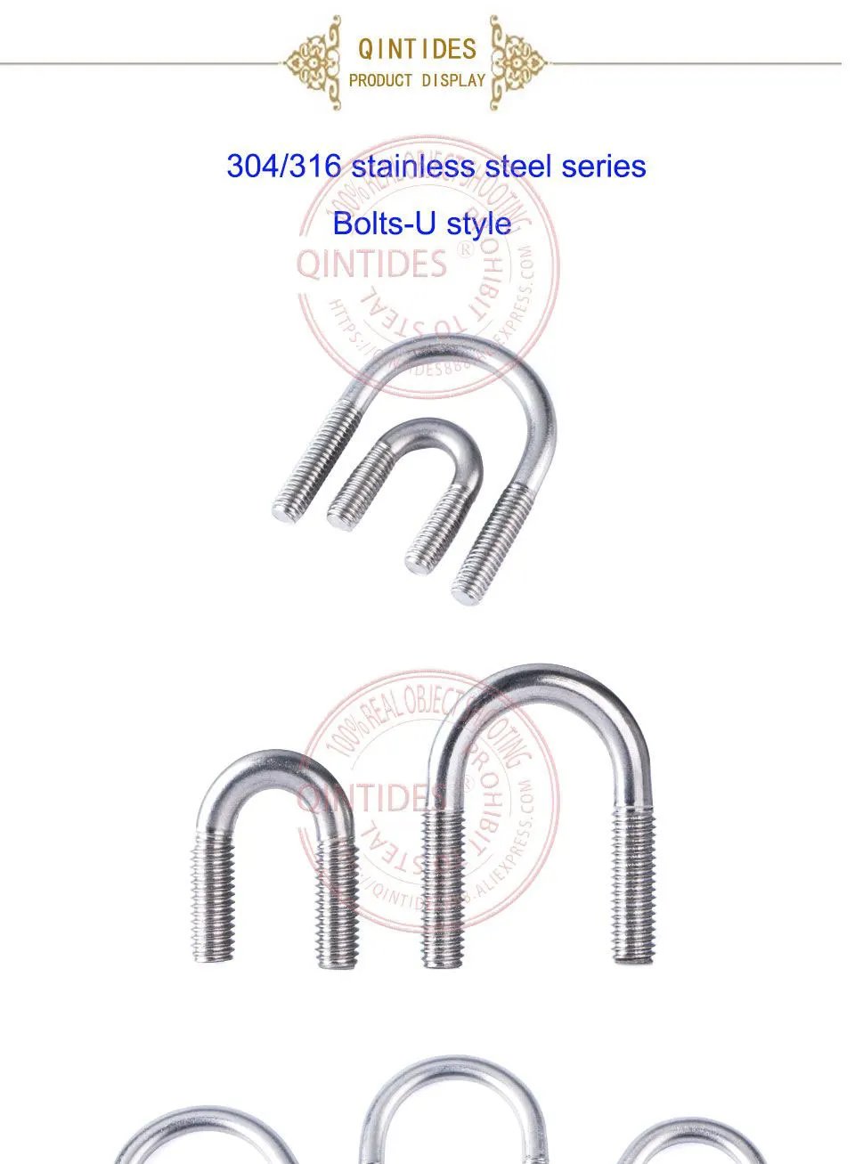 QINTIDES M6 M8 M10 болты U Style 304/316 винт из нержавеющей стали, пряжка, болт, U-образный трубный зажим