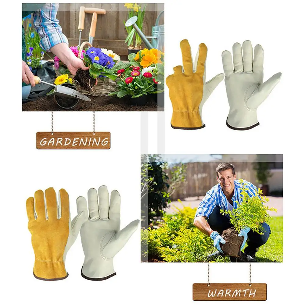 Широкое Применение: эти кожаные рабочие перчатки не нуждаются в дополнительной подкладке, поскольку они естественно дышащие, впитывающие пот и удобные. Они идеально подходят для тяжелых условий эксплуатации, строительства, вождения грузовиков, склада, фермы, столярных работ, переноски, садоводства.