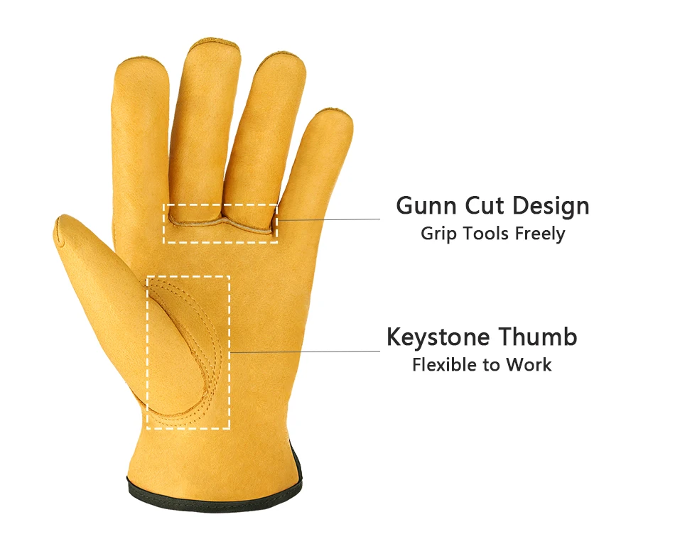 Эти рабочие перчатки изготовлены из тщательно отобранной высококачественной воловьей кожи и спиленной коровьей кожи толщиной 1,0-1,2 мм. который не только толстый, но и мягкий и гибкий, с умеренной маслостойкостью, устойчивостью к проколам и порезам.Двойная резьба шить и эластичные запястья