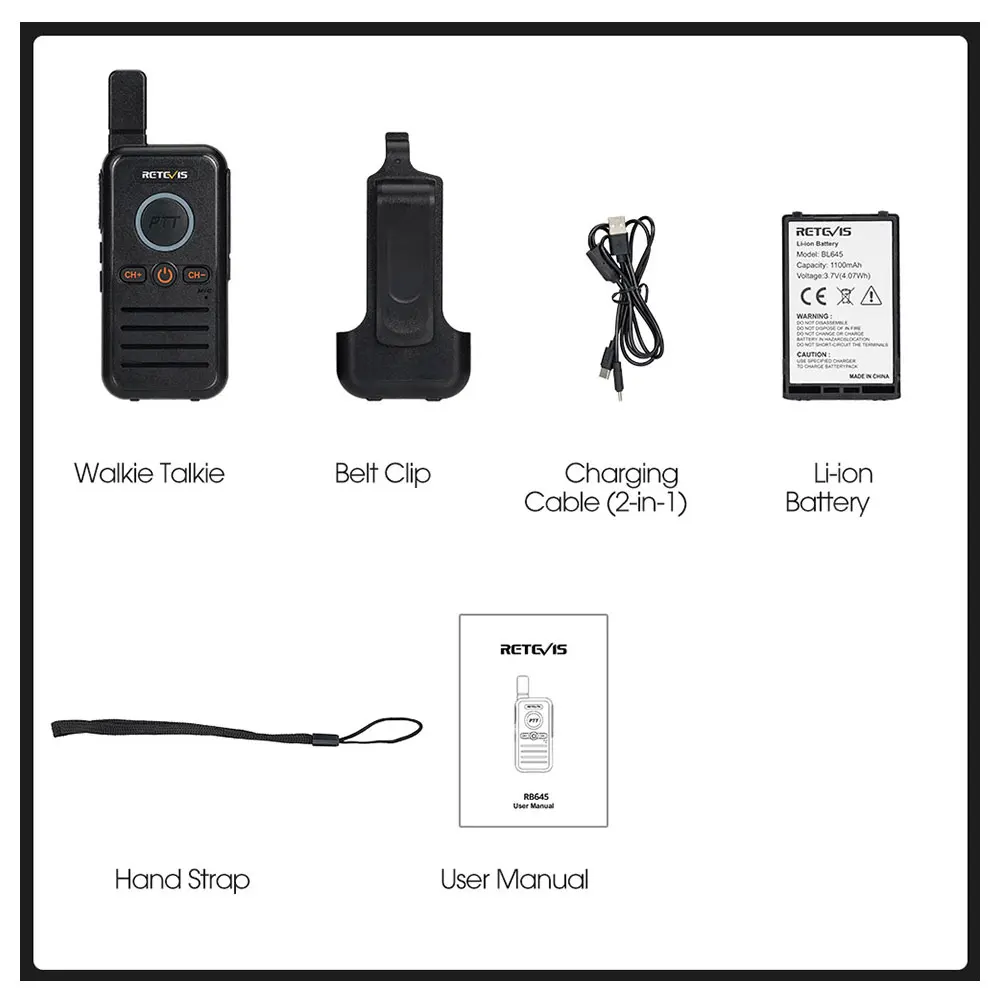 • USB-зарядка:Рацию Retevis RB645 можно заряжать через USB, что делает ее удобной и простой в использовании.