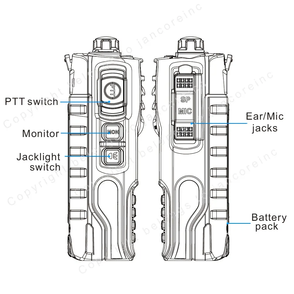 TX: UHF400-470MHz / VHF136-174MHz / Police350-390MHz