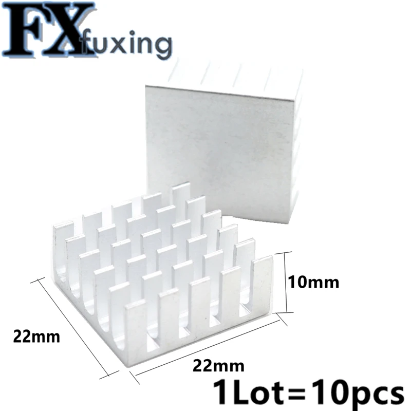 10 шт. радиатор охлаждающий ребристый Алюминиевый Радиатор Охладитель радиатор для чипа IC LED серебристый 22*22*10 мм черный 22x22x10 мм светодиодный радиатор