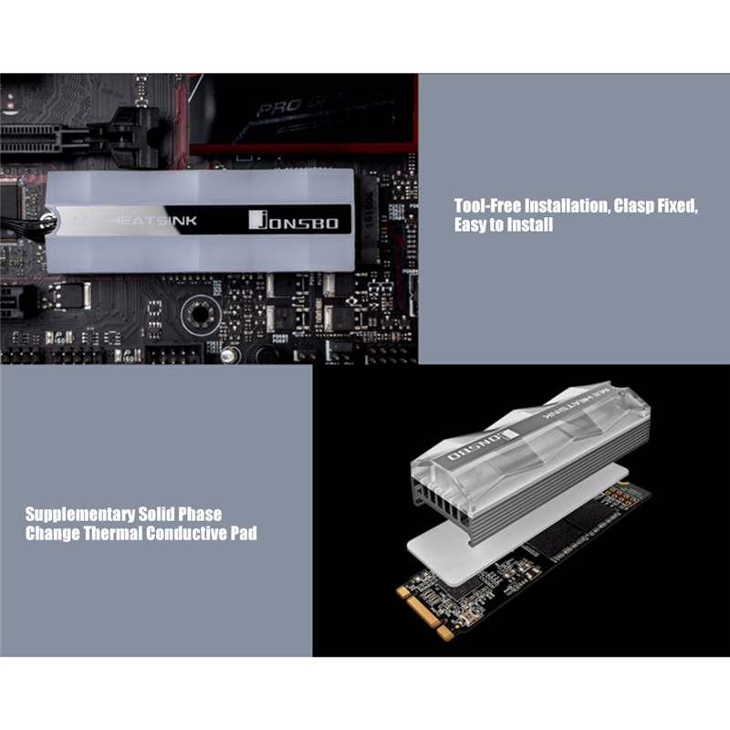 1. Высококачественная теплопроводная силиконовая пластина, в полном контакте с M. Твердотельный жесткий диск 2280, может быстро потреблять тепло через полностью алюминиевый радиатор.