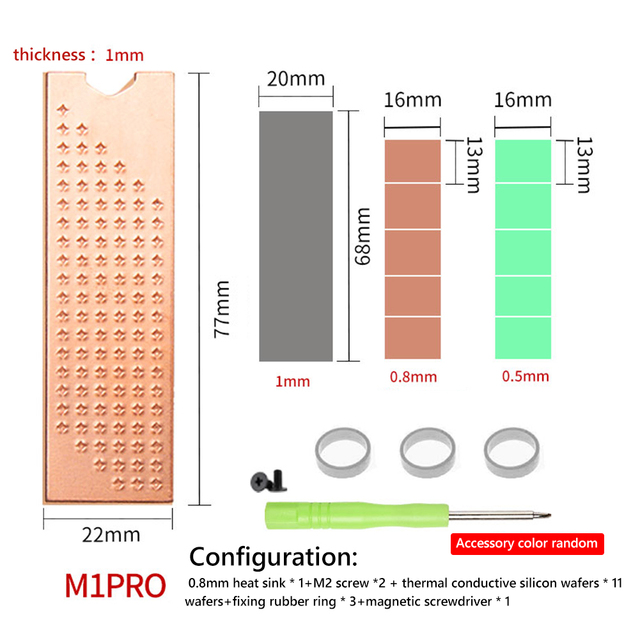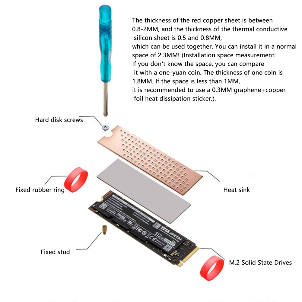 Толщина красного медного листа составляет 0,8-2 мм, а толщина теплопроводного силиконового листа составляет от 0,5 до 0,8 мм. Два типа могут использоваться вместе и могут быть установлены в нормальном пространстве 2-3 мм! (Измерение пространства для установки: если вы не знаете пространство, вы можете сравнить его с монетой толщиной 1,8 мм.)