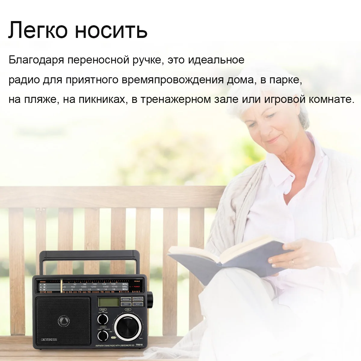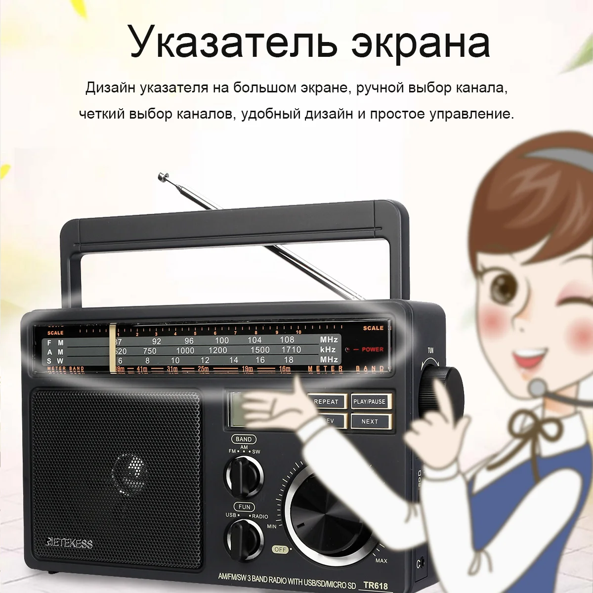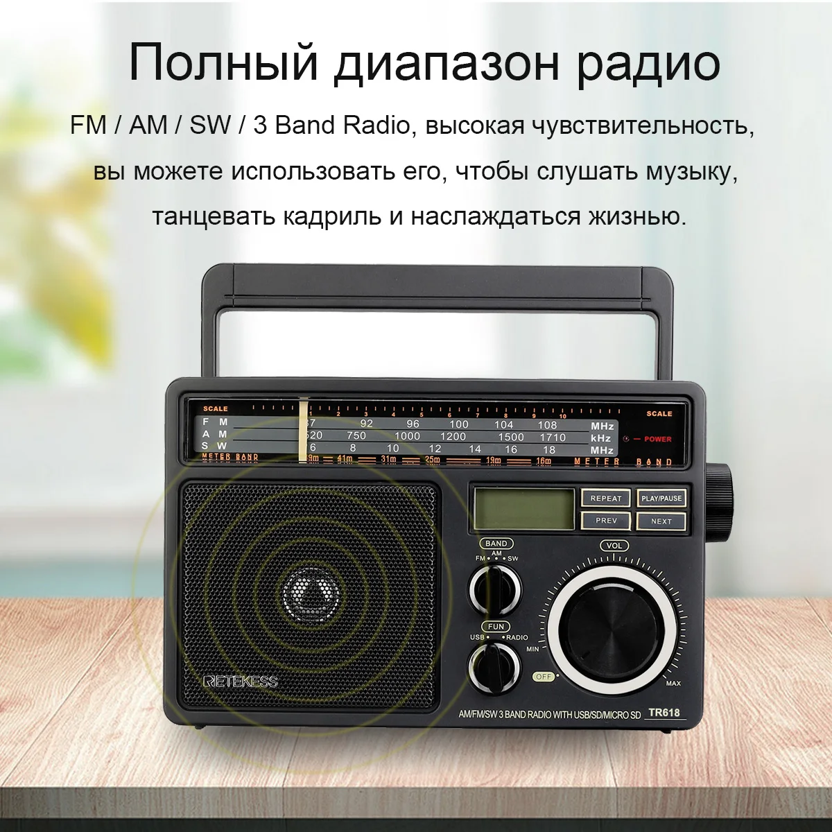 Retekess TR618 FM / AM/SW 3 диапазона портативное радио с USB TF SD плеером большие колонки большой объем радио для пожилых людей