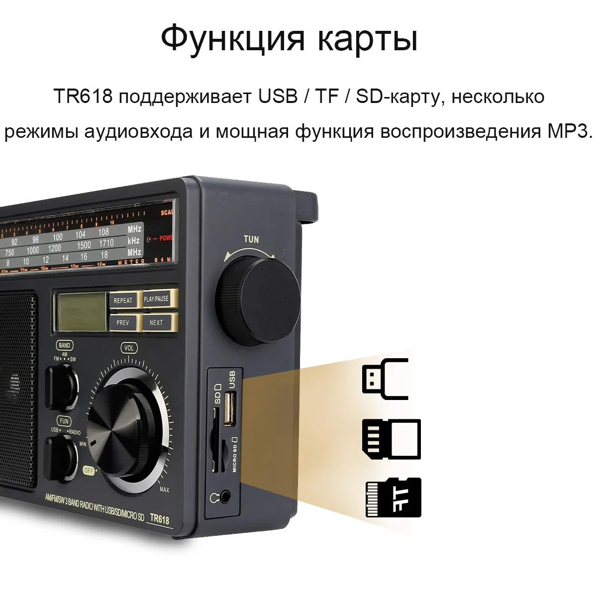 5. Функция карты:TR618 поддерживает USB / TF/sd-карту, несколько режимов аудиовхода и мощную функцию воспроизведения MP3.