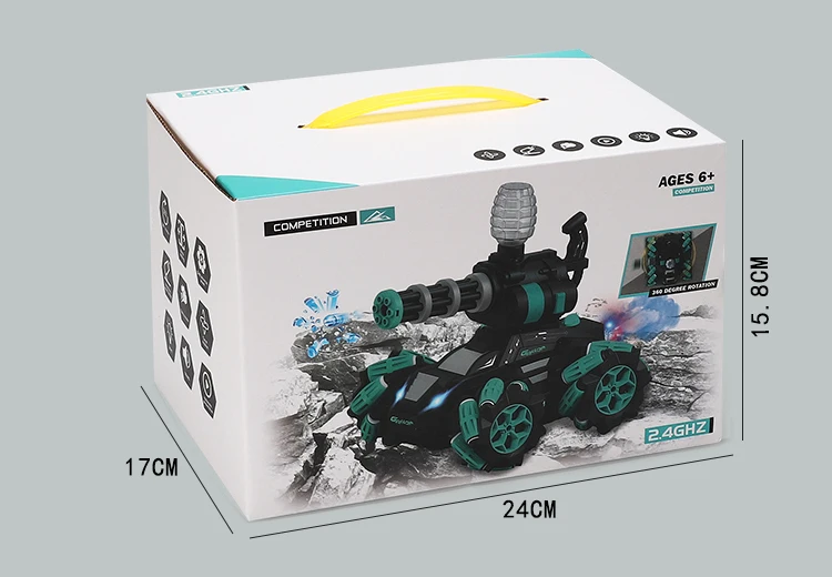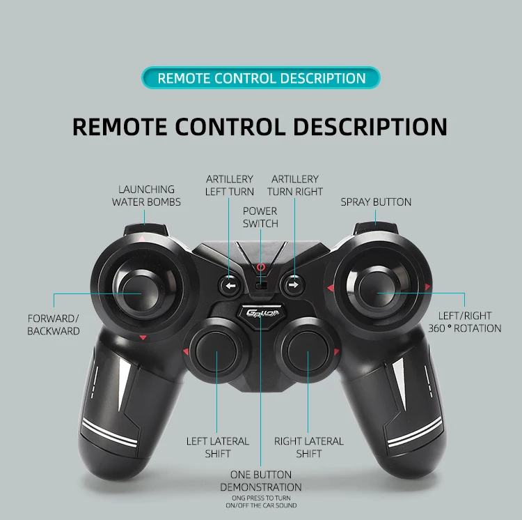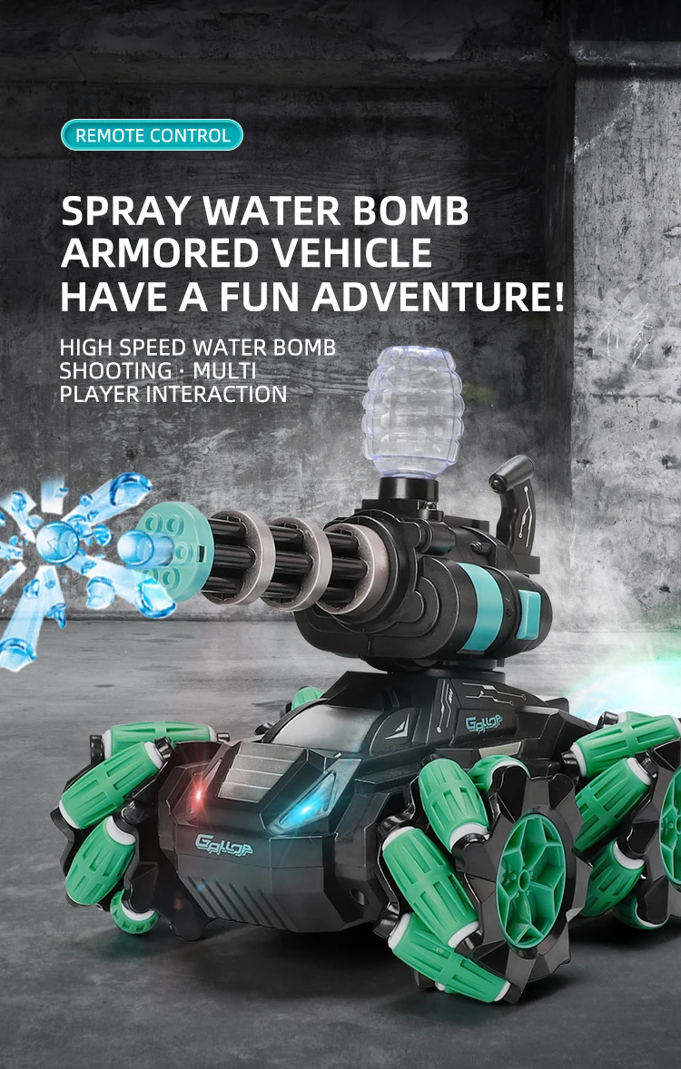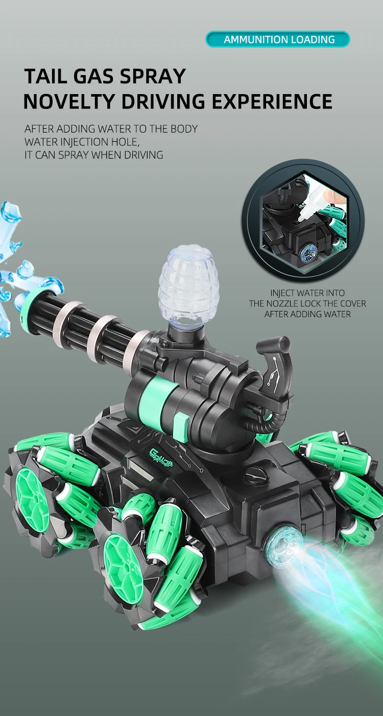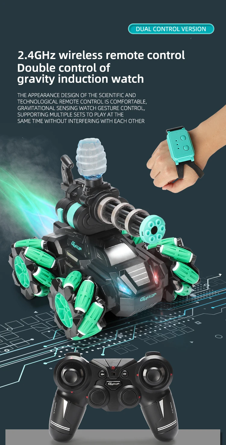 ВЫСОКОСКОРОСТНАЯ СЪЕМ БОМБ С ВОДОЙ · МУЛЬТИ-ИГРОКОВОЕ ВЗАИМОДЕЙСТВИЕ, ИНТЕЛЛЕКТУАЛЬНАЯ СИСТЕМА КОНТРОЛЯ ВМЕСТЕ С УМНЫМИ МЕХАНИЧЕСКИМИ ШИНАМИ, ДОВОЖДЕНИЕ ЛЕВОЕ И ПРАВОЕ ВОЖДЕНИЕ ВРАЩЕНИЕ на 360 ° НА МЕСТЕ, УДОВОЛЬСТВО ИГРАТЬ, беспроводной пульт дистанционного управления 2,4 ГГц Двойное управление часами с гравитационной индукцией, СПРЕЙ НА ХВОСТИ НОВИНКА ОПЫТ ВОЖДЕНИЯ, ВООРУЖЕННАЯ ЧАШКА ОРУЖИЯ ДВИЖИВАЕТСЯ СДЕЛАТЬ ВАШУ СЪЕМ БОЛЬШЕ ТОЧНО.