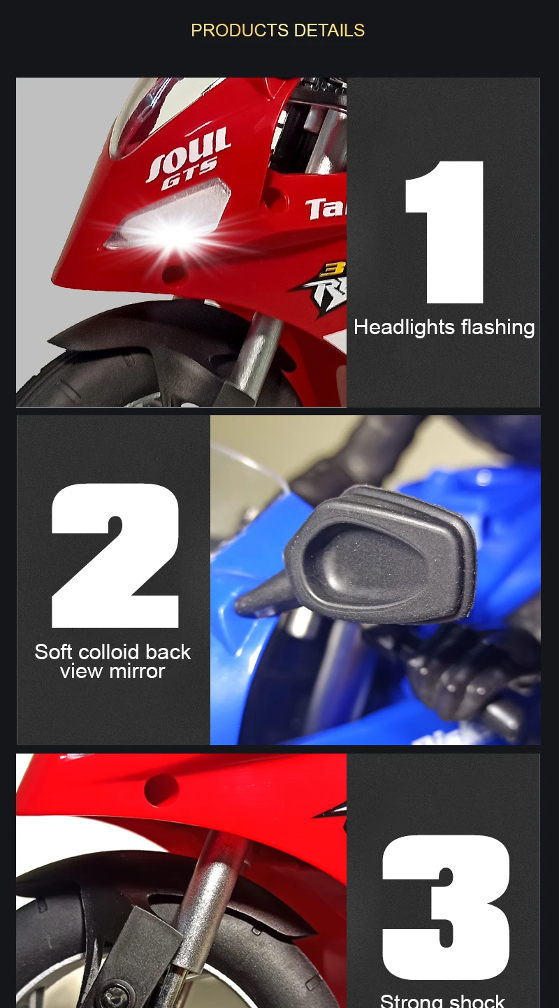 Продукт использует резиновые мешки, чтобы впрыснуть колеса, вождение более стабильным и более износостойким.