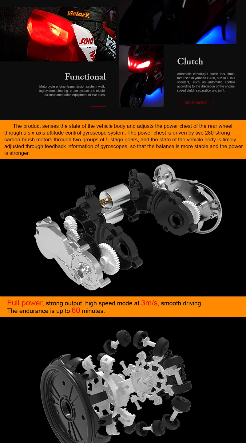 Этот продукт принимает 6-осевой гироскоп ощущать отношение, в результате чего баланс более стабильным и управление проще.