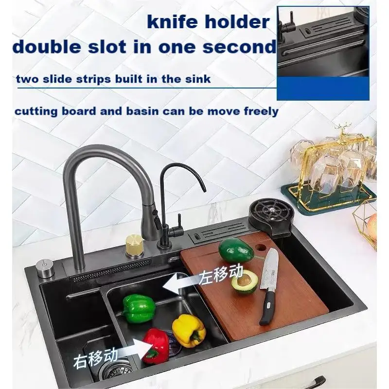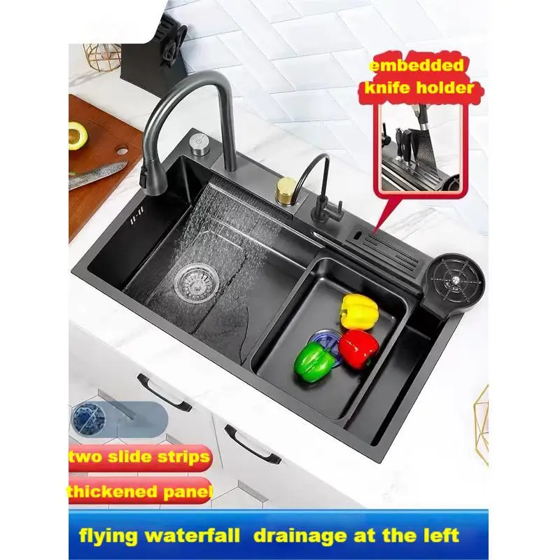 Раковина водопад из нержавеющей стали Nano 304, большая раковина, раковина для овощей, мойка для кухонной чашки, бытовая левая раковина