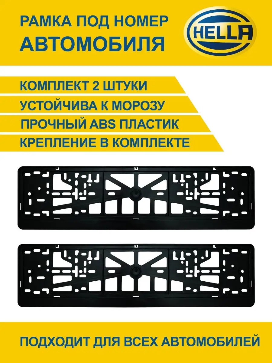Описание: Рамка для номера автомобиля односоставная, универсальная от фирмы Hella подойдет для любых марок автомобилей. Черная, белая, желтая, красная, синяя, розовая, серая, серебристая, оранжевая, зеленая рамка для крепления номерного знака автомобиля без надписей, рекламы и лишней информации сделана из качественного ABS-пластика. Авторамки к автомобилю с легкостью выдерживают жару и мороз. Рамка номера Hella легка в установке и в комплекте содержит 2 рамки для переднего и заднего номерного знака, также содержит весь необходимый комплект крепления рамки к автомобилю и номерного знака к рамке, крепление с антикоррозийным покрытием: 4 самореза, 4 винта, 4 гайки.