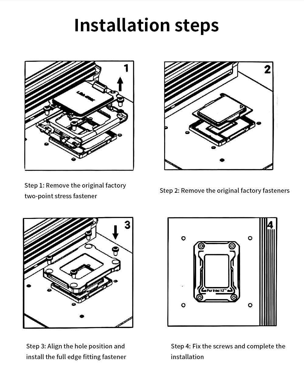 Двухточечная Пряжка напряжения оригинальной фабрики может легко вызвать деформацию процессора, что может повлиять на производительность. Эта Пряжка полностью соответствует методу посадки и фиксации рамы с равномерным напряжением и меньшей деформацией.