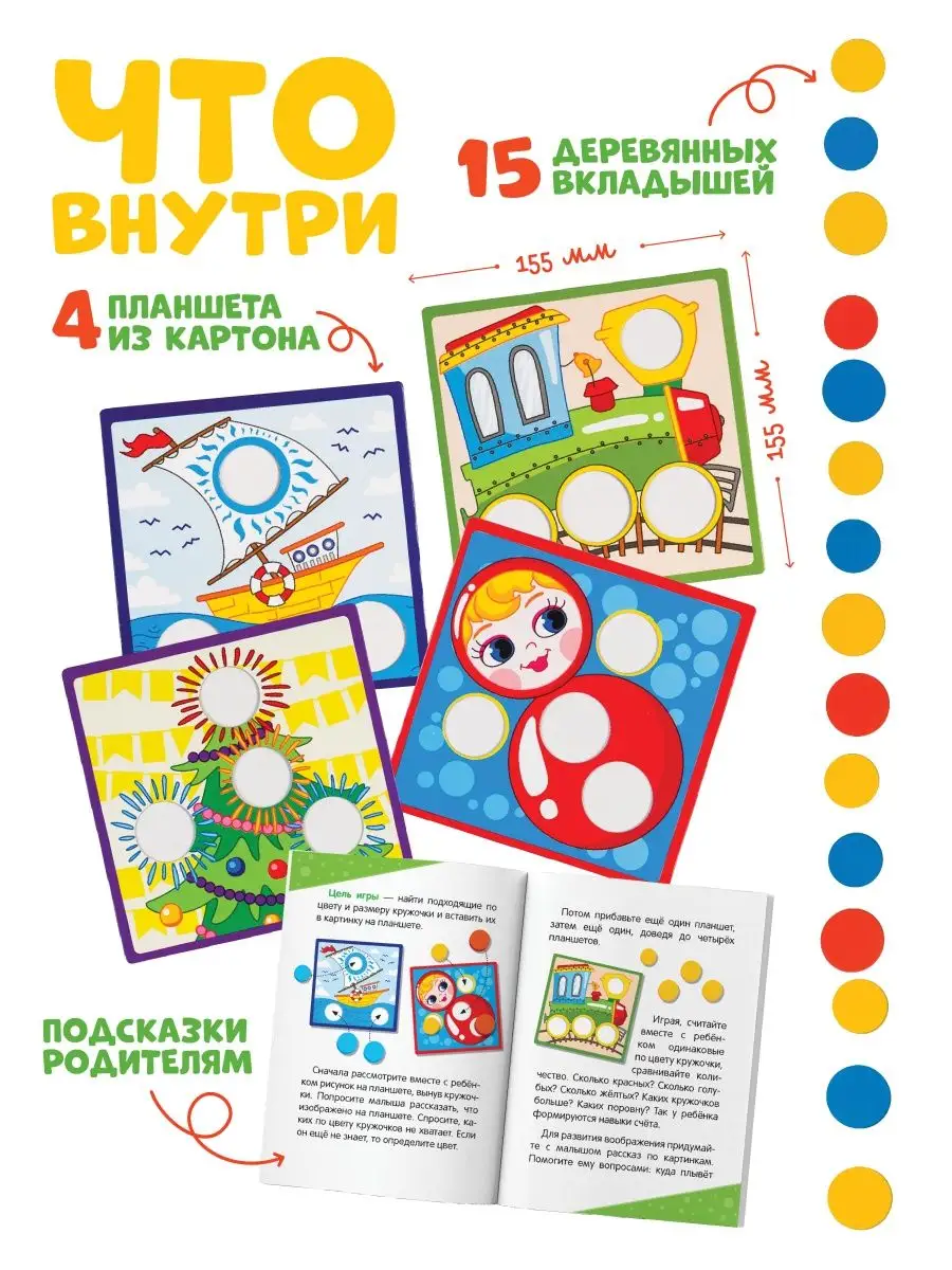 Комплектация Прочная и удобная коробка для хранения игры - 1 шт; планшет-рамка для деревянных вкладышей - 4 шт; деревянные вкладыши - 15 шт; Инструкция для родителей - 1 шт