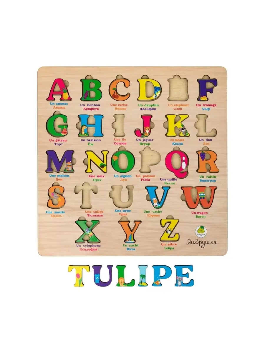 Рамка-вкладыш сортер деревянная "Французский алфавит"