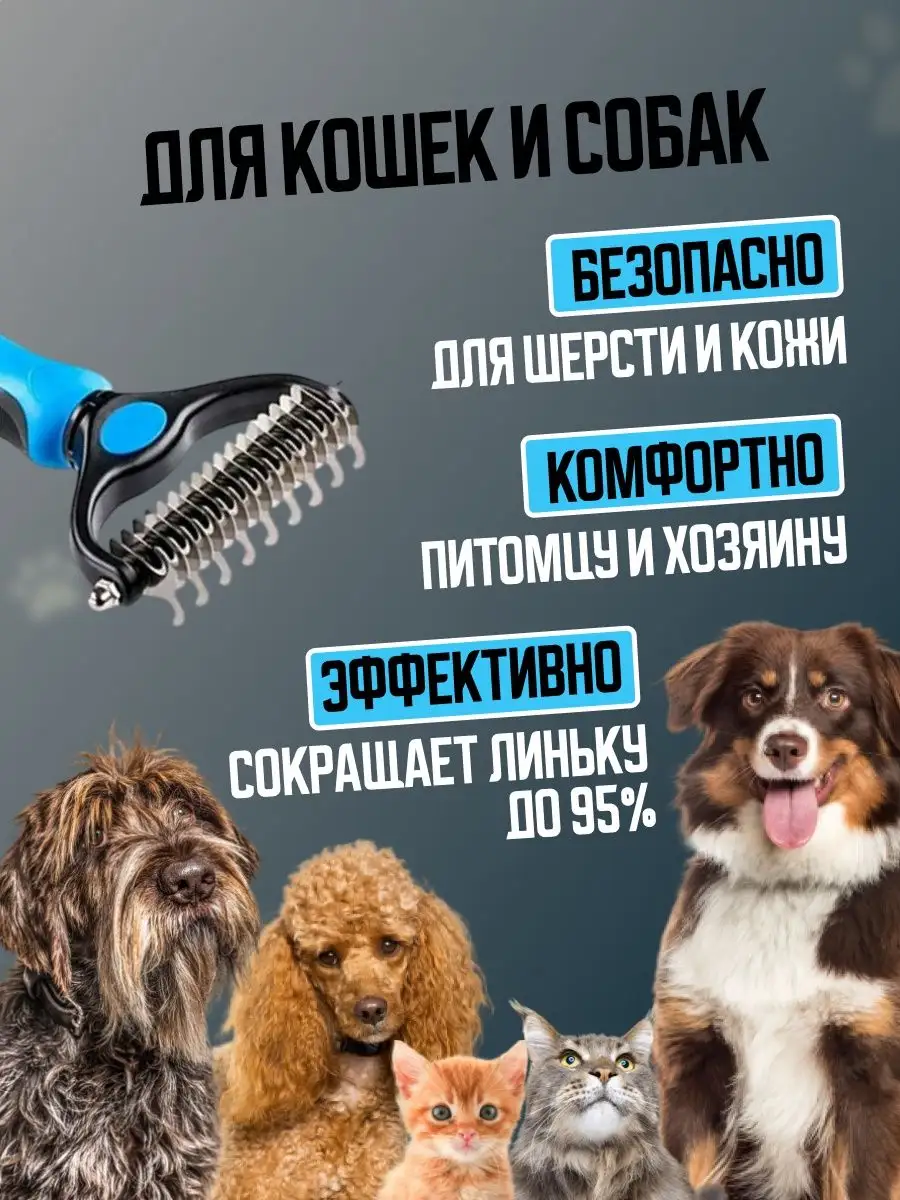 Расческа чесалка для кошек и собак 2в1 фурминатор