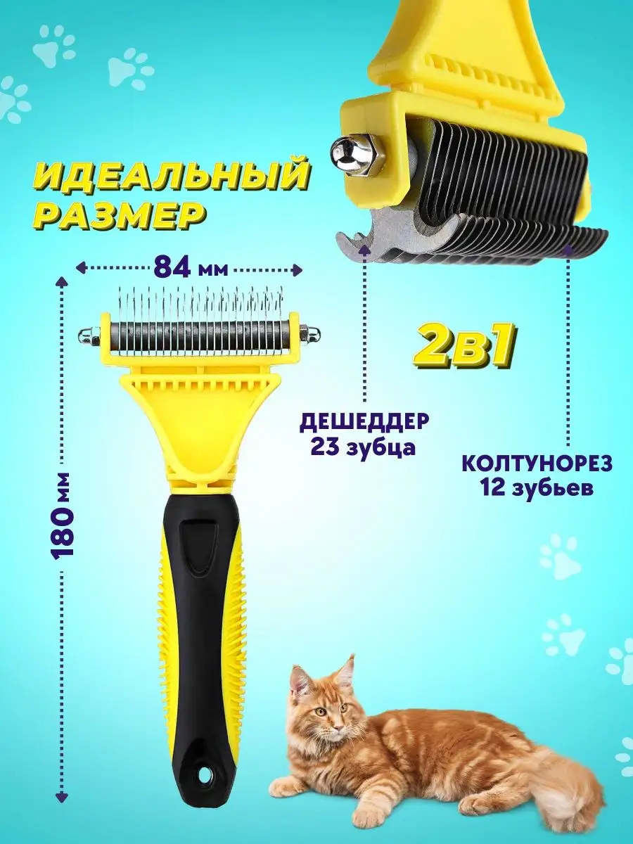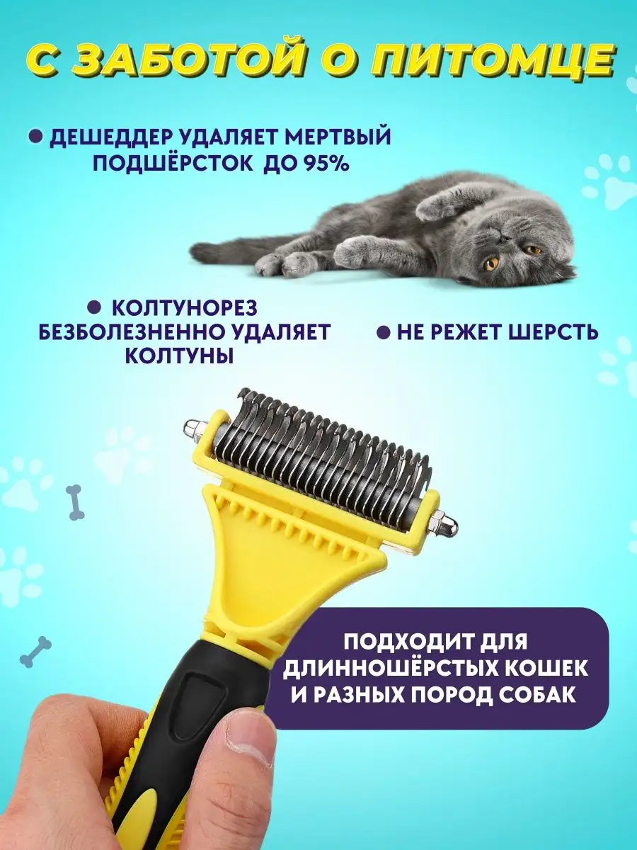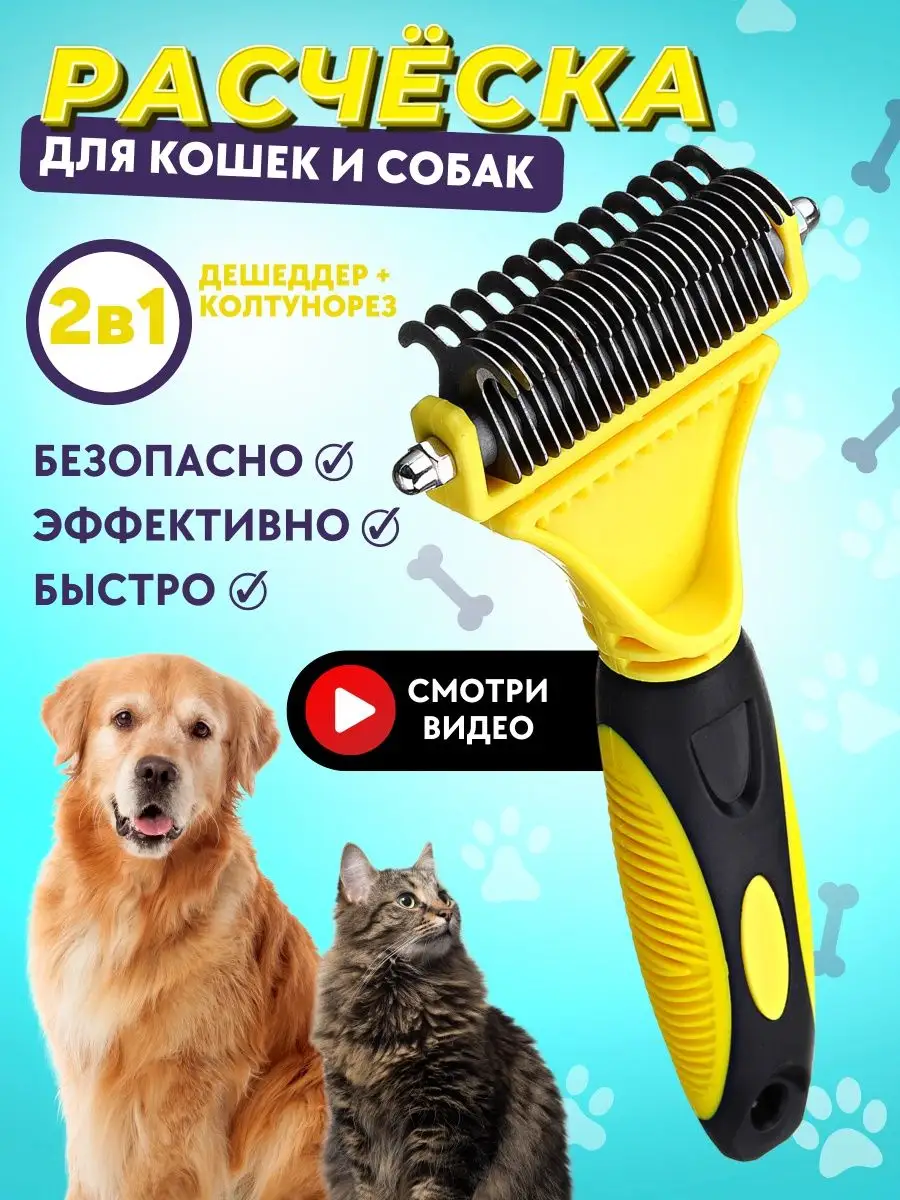 Расческа для кошек и собак щетка чесалка колтунорез дешеддер