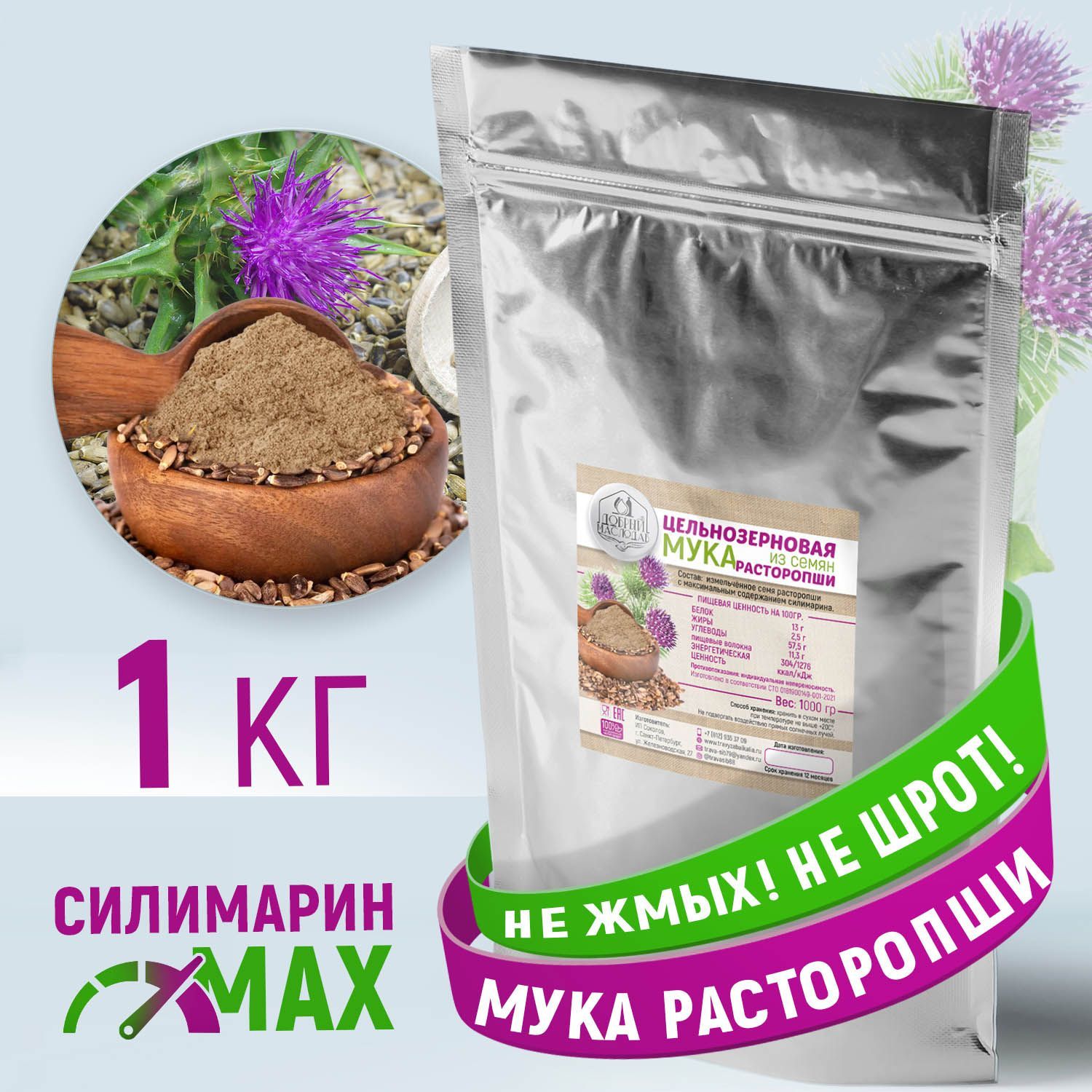 Расторопша семена (мука цельнозерновая мелко измельчённая) Добрый Маслодав 1000 г