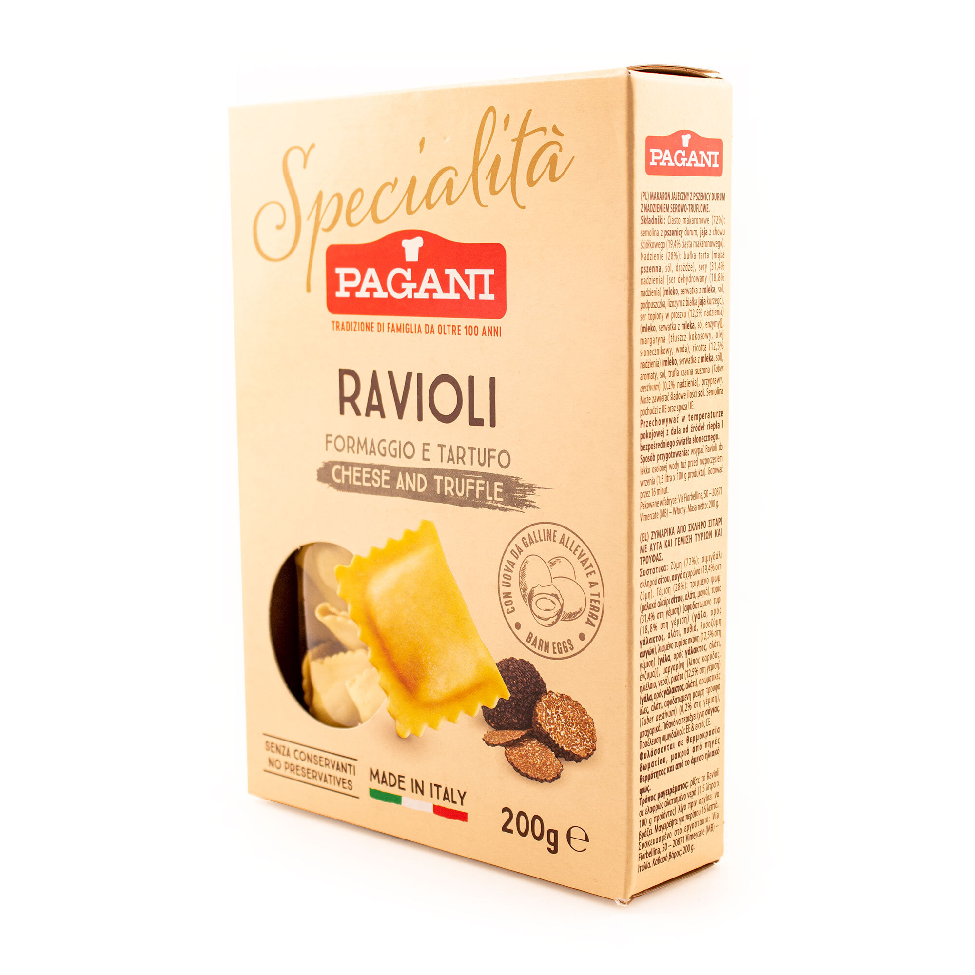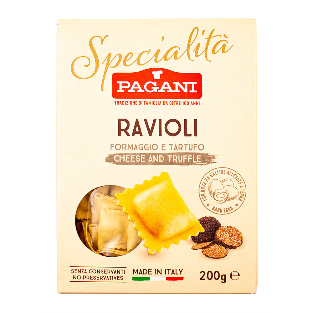 Равиоли с сыром и трюфелем SPECIALITA, паста яичная фаршированная сырами и черным трюфелем, PAGANI, 0,200 кг (карт/кор)