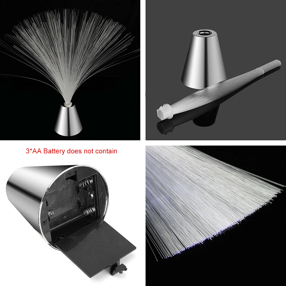 1: В светодиодных волоконно-оптических лампах используются три батарейки типа АА, а три комбинации красного, зеленого и синего цветов излучают красочный свет.