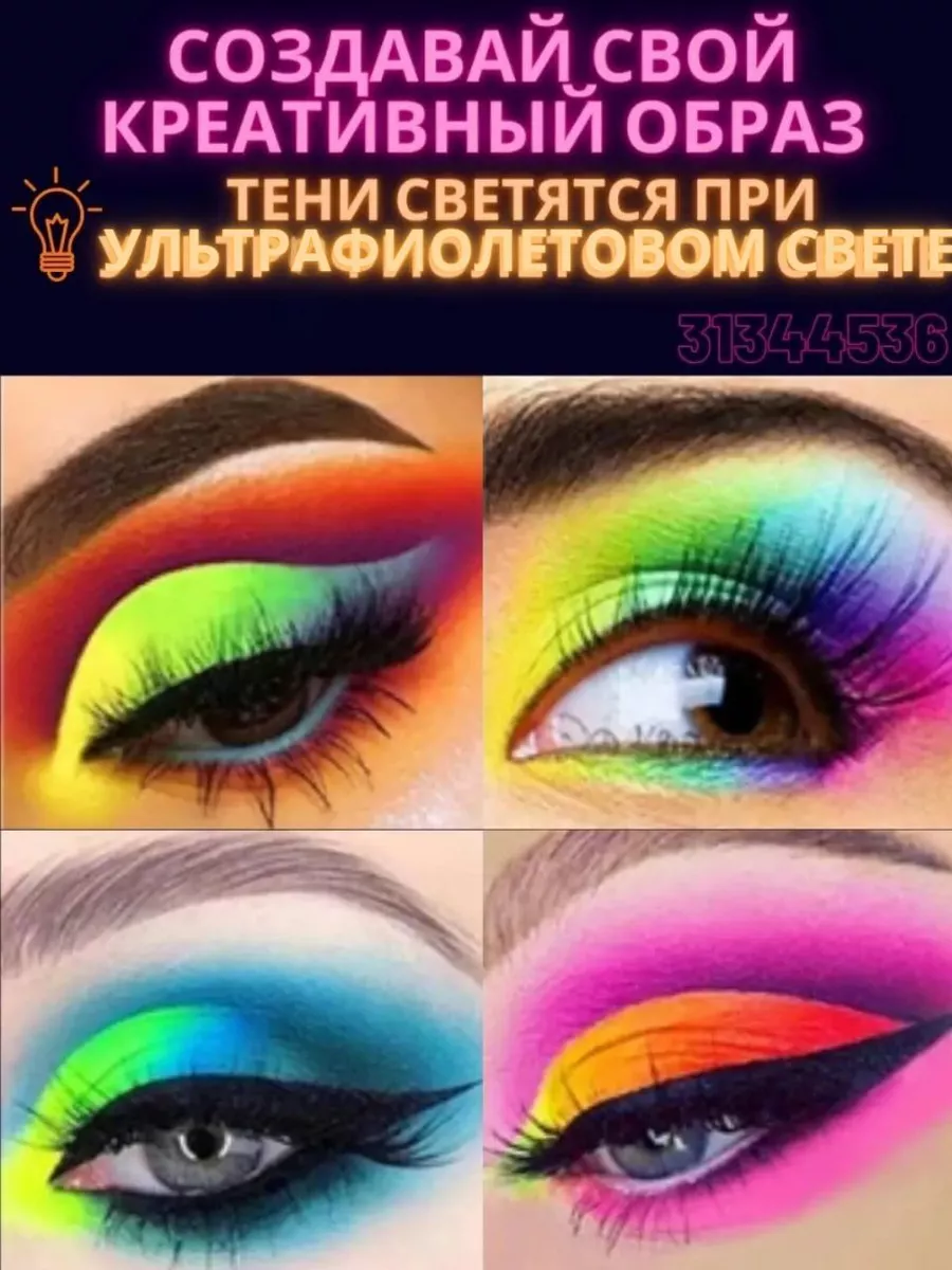 Комплектация тени яркие для глаз; неоновые тени; яркие пигменты