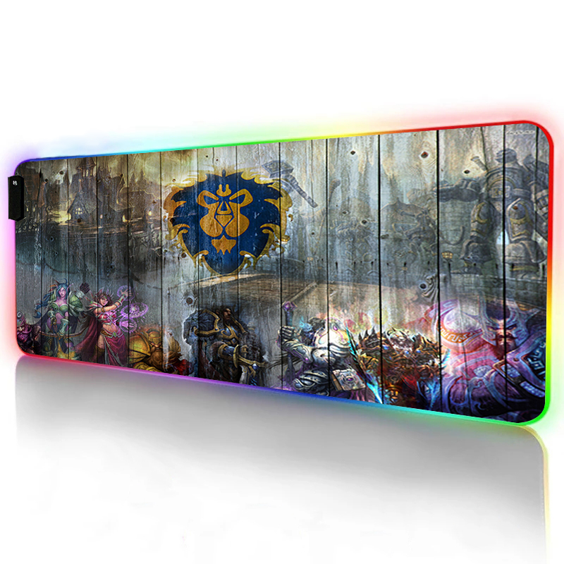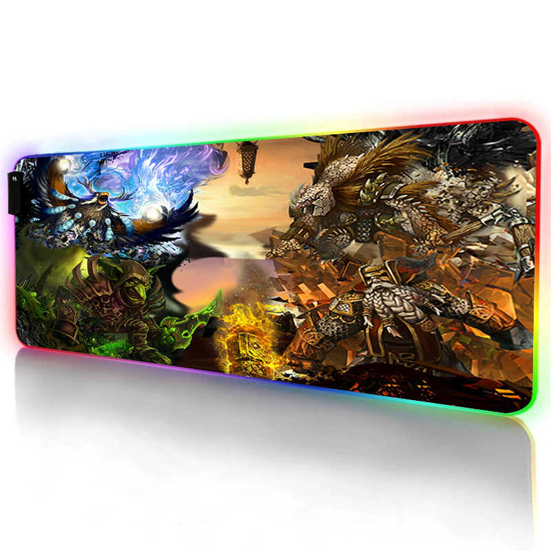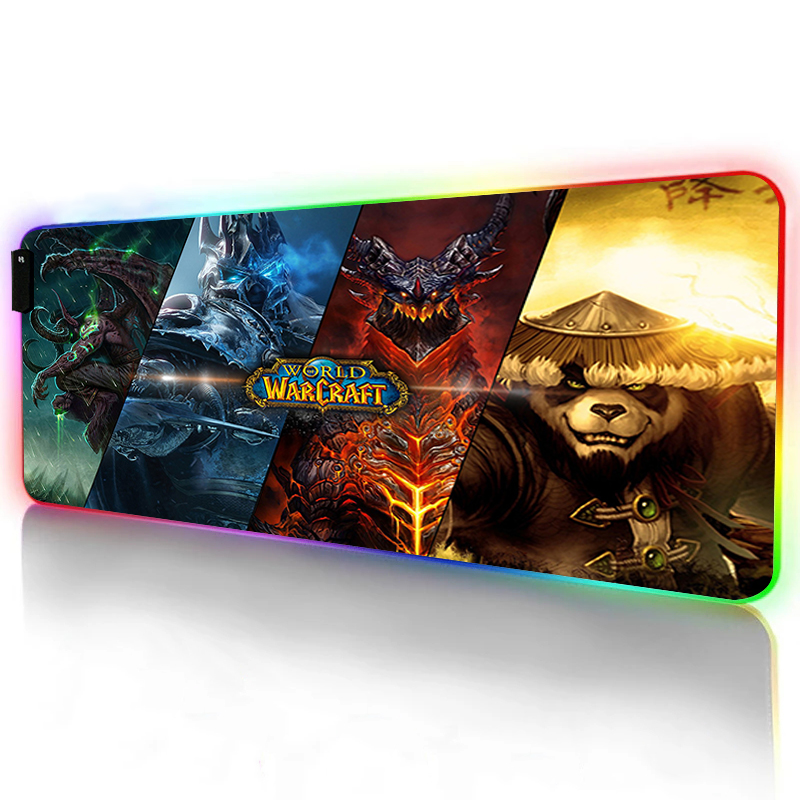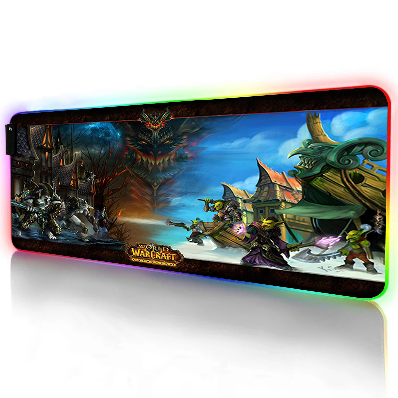 Разноцветный светящийся игровой коврик для мыши большого размера RGB World of Warcraft, Противоскользящий резиновый базовый Коврик для компьютерной клавиатуры и мыши с подсветкой