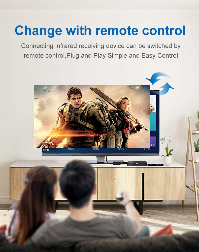 ● Этот переключатель HD поставляется с инфракрасным пультом дистанционного управления, чтобы вы могли без проводов переключаться между устройствами, не вставая с дивана.