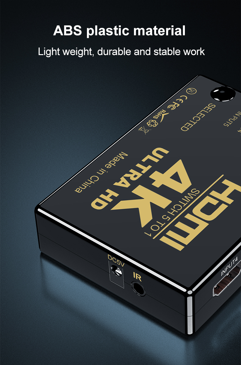 ● Этот переключатель HD позволяет подключать до 5 источников, совместимых с HDMI, к одному HD-дисплею, плавно переходить между играми, телевизором и т. Д.