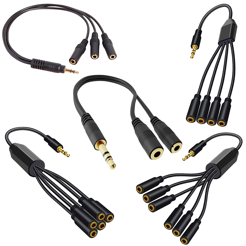 Разветвитель для наушников со штекером 1/8, 3,5 мм на 2/3/4/5/6 портов с гнездом 3,5 дюйма, стерео адаптер AUX для ПК, ТВ, MP3, динамиков