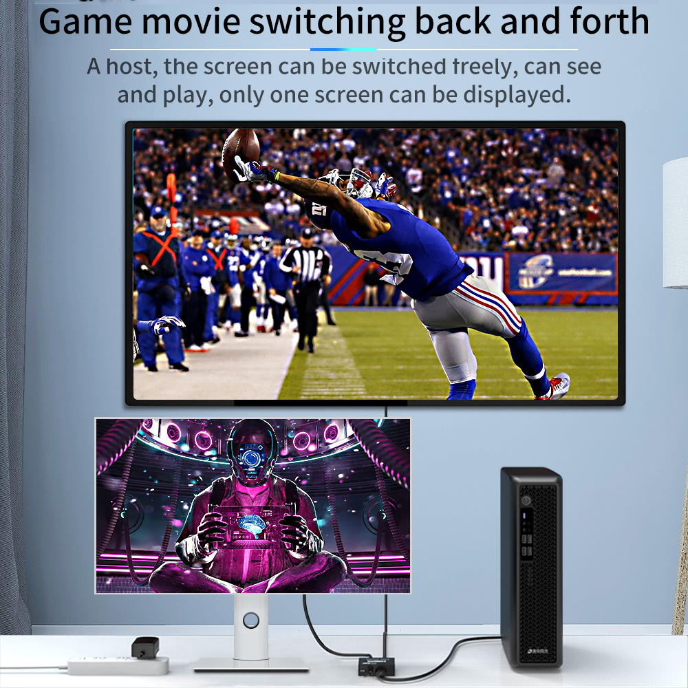 Двусторонний переключатель HDMI: этот разветвитель HDMI 1 In 2 Out/ 2 In 1 Out может Подключать два источника HDMI к одному дисплею HDMI, или подключите один источник HDMI для переключения между двумя дисплеями (будет отображаться только один монитор).
