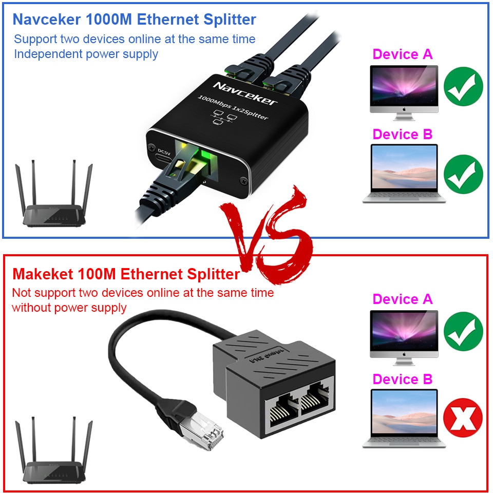 Navceker Ethernet Разветвитель Адаптер Преимущества Дизайн: