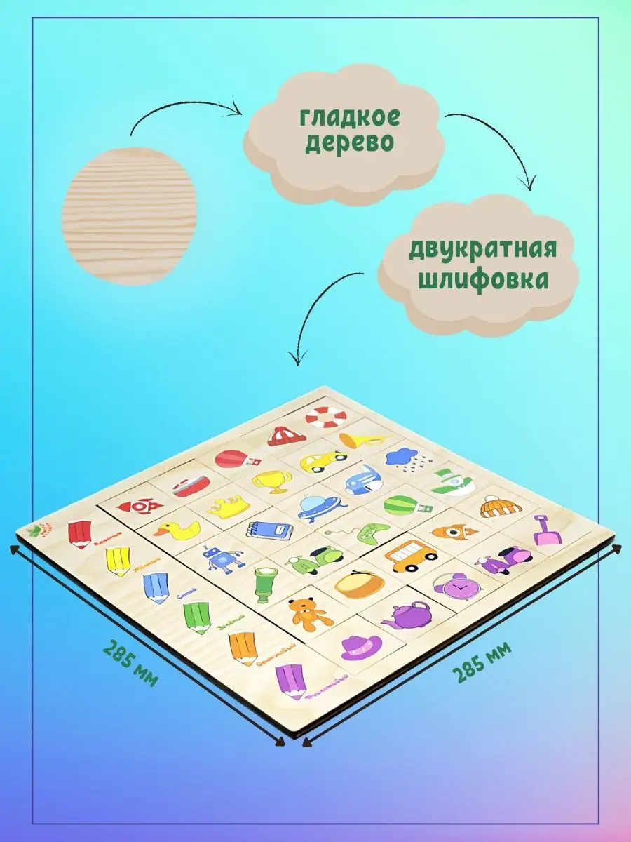 Комплектация 30 игровых элементов; рамка вкладыш; ассоциации; игра ассоциации деревянная