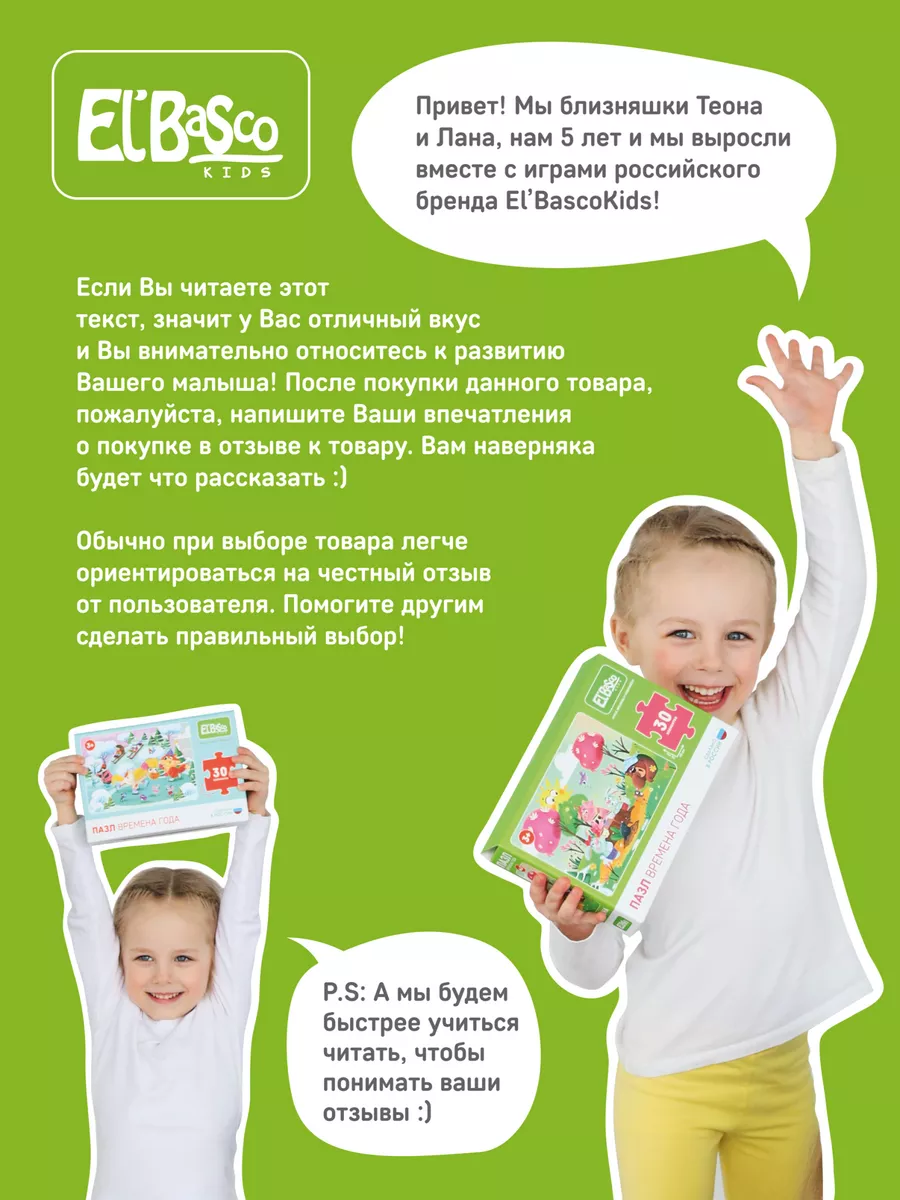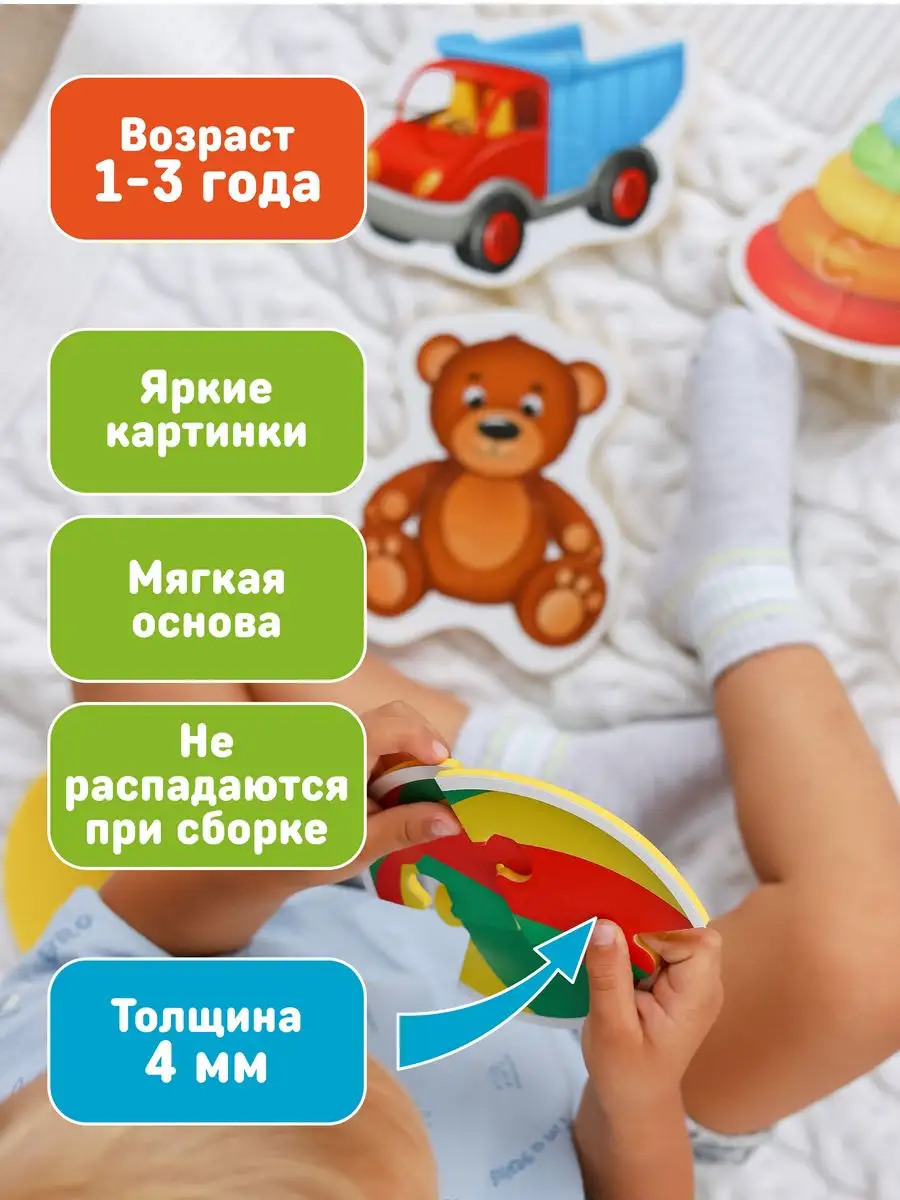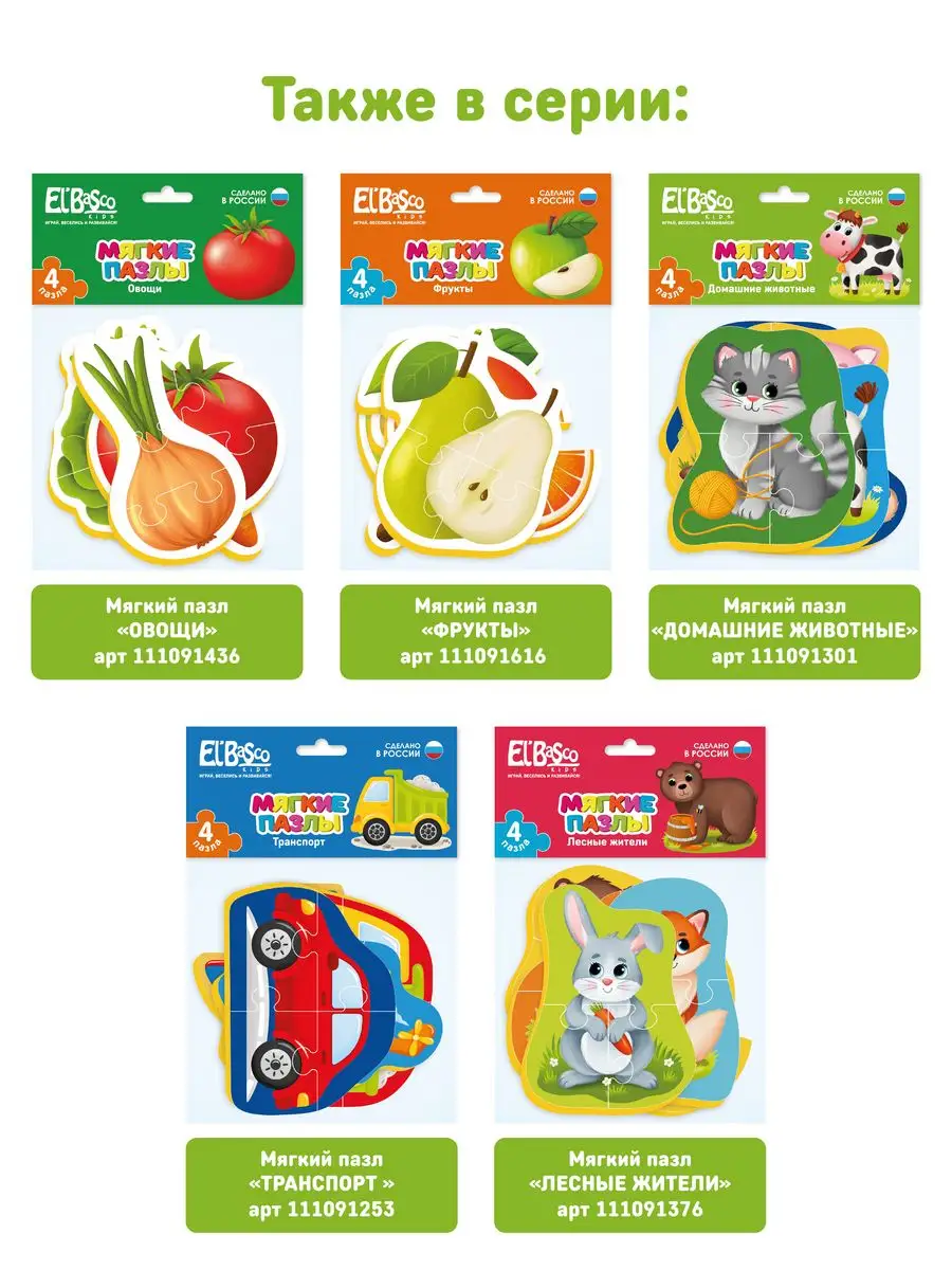 Описание: Бейби пазлы для малышей изготовлены из картона с подложкой из изолона и подходят для игр и занятий по системе монтессори для развития моторики, логики, памяти, цветовосприятия и мышления малышей. Каждый набор состоит из 4 картинок, каждый пазл IQ состоит из 2 и более элементов. Толщина деталей 4 мм , их легко брать в маленькую руку. Лучший подарок детям - это игрушка, помогающая развиваться. Развивающая игрушка baby пазл с тематикой Букашки и насекомые , Домашние животные , Зоопарк , Игрушки , Лесные жители и животные леса , Морские жители и обитатели моря и океана , Овощи , Полезные машины , Транспорт , Ферма и животные фермы , Фрукты , Колобок , Репка , Теремок ( сказки маршака ) , Три поросенка ( сказки михалков ) . Наши детские пазл maxi пазлы с крупными деталями и крупными элементами подходят для детей раннего возраста , многие родители приобретают их для малышей от 1 года и 2 лет. Творческий набор пазлов - это недорогой подарок в детский сад на утренник. Такая игрушка станет чудесным подарком на день рождения. Подарочный набор будет отличной покупкой для внучки или внука. Игра для малыша разнообразит будни ребенка и подарит много свободного времени его родителям! Игра детская поможет в игровой форме изучать животных, придумывать истории о них, запоминать части тела и учить звуки, которые издают звери. Для ребенка идеальный первый пазл – макси пазл . Пазлы детские макси – самые популярные пазлы в ассортименте бренда El`BascoKids. Картинки в серии : дракон , грузовик , медведь , пирамидка , мяч , полицейская машина , пожарная машина , трактор , экскаватор , осьминог , краб , рыбка , акула икеа , кот , свинья , собака , корова , лиса , медведь , волк , заяц , банан , груша , яблоко , апельсин , пингвин , олень , тюлень , белый медведь , жираф , попугай , слон , лев , лошадь , утка , коза , овца , пэчворк , кузнечик , стрекоза , бабочка , божья коровка , панда , слон , вертолет , корабль , капуста , морковь , помидор , лук . У нас в продаже Вы еще найдете : магнитные пазлы, фигурные пазлы, пазлы для взрослых, пазлы 100 элементов, пазл с рамкой, пазл 30 60 80 элементов , большой напольный пазл , напольные пазлы , пазлы для ползания , пазлы на пол , сортеры пазл и пазл сортер.