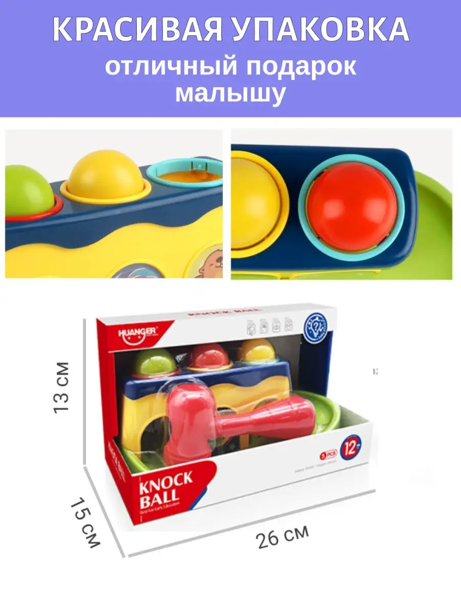 Комплектация шарики цветные - 3 шт; молоток - 1 шт; сортер - 1 шт