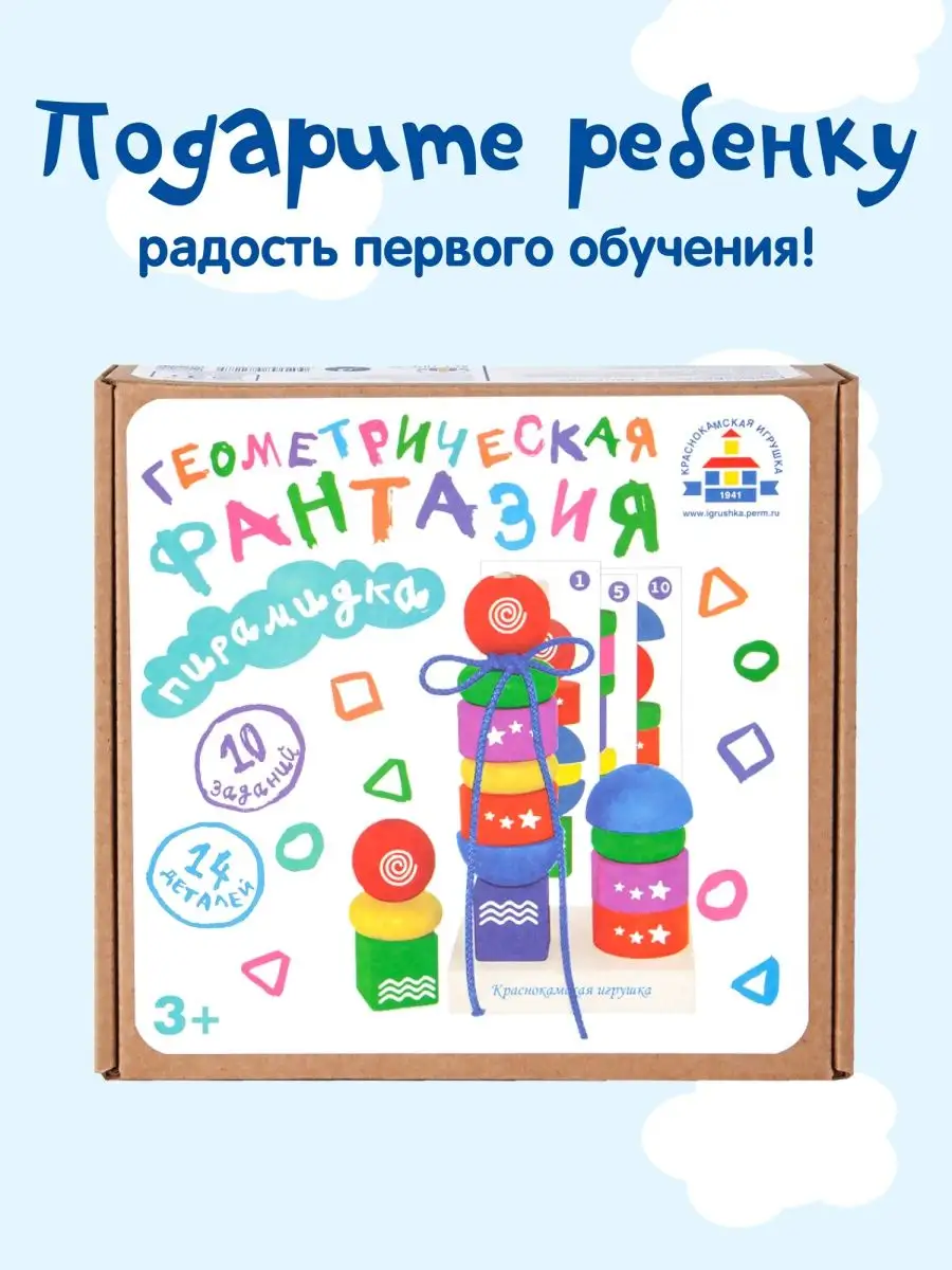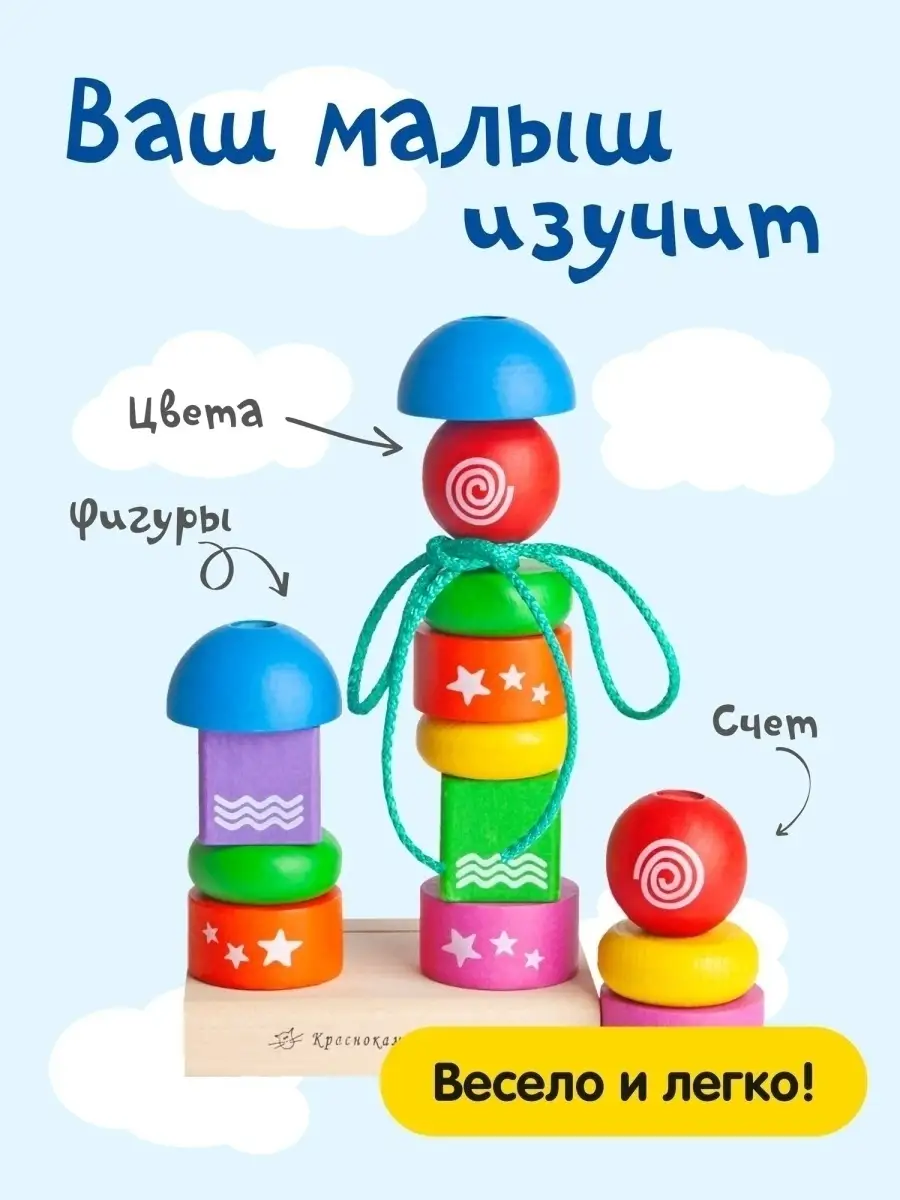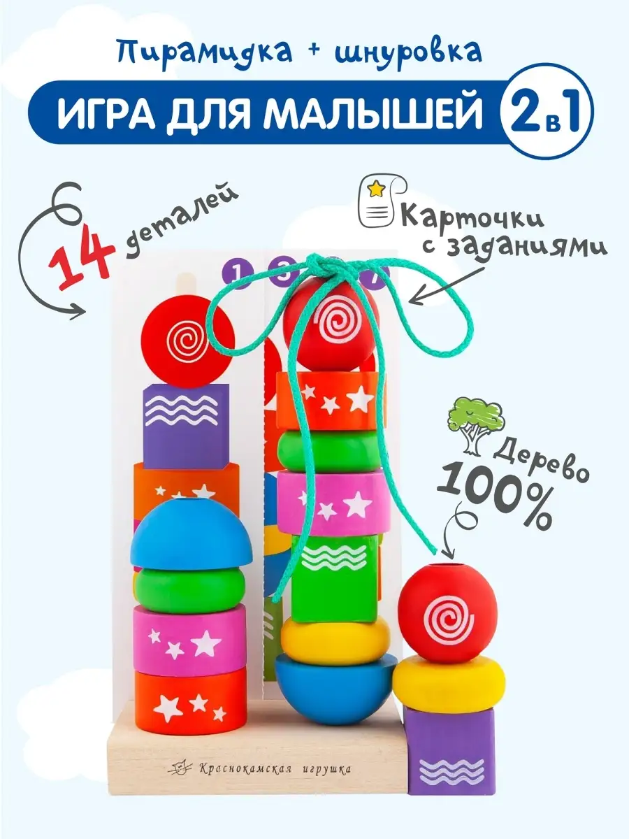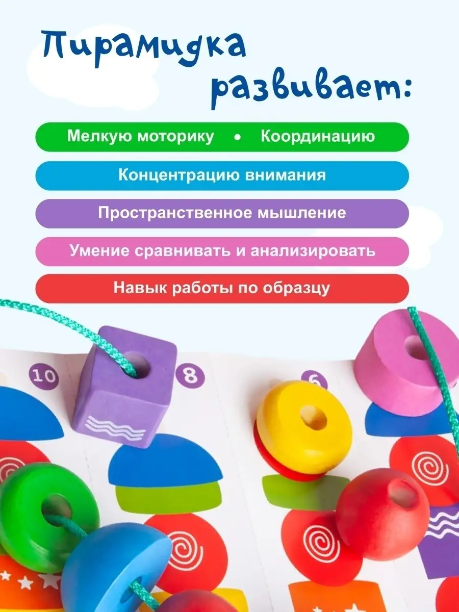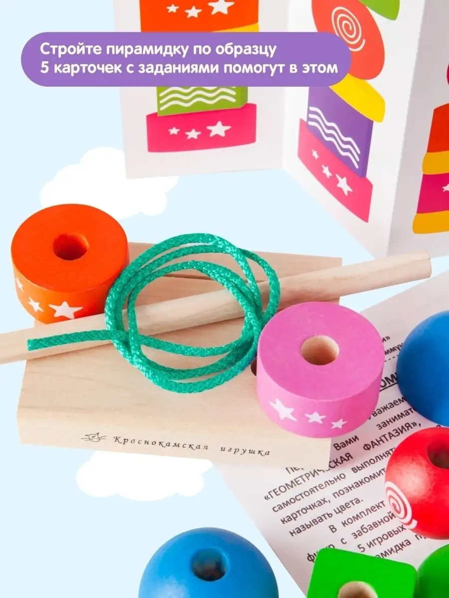 Развивающая Пирамида-сортер-шнуровка Геометрическая фантазия